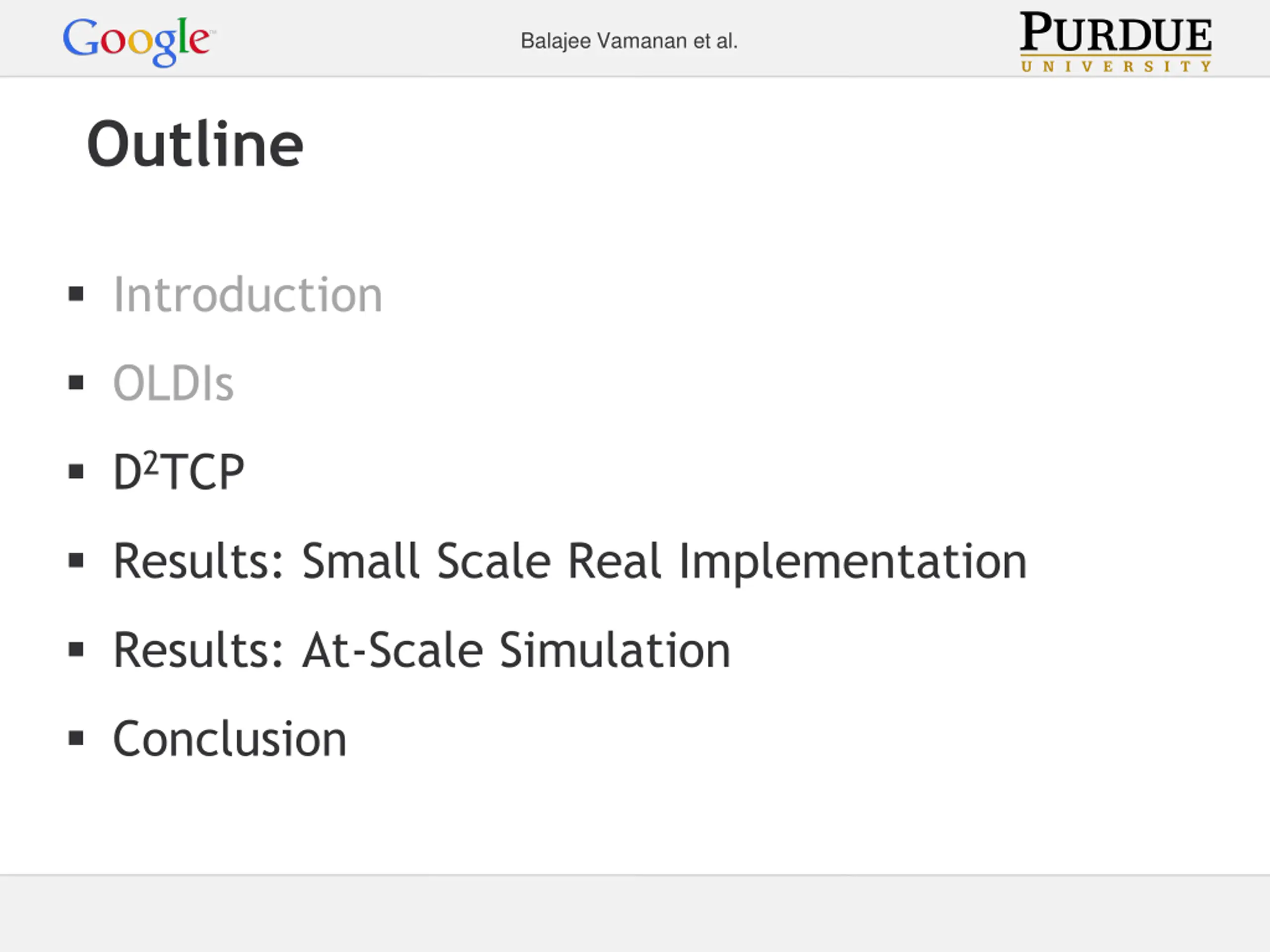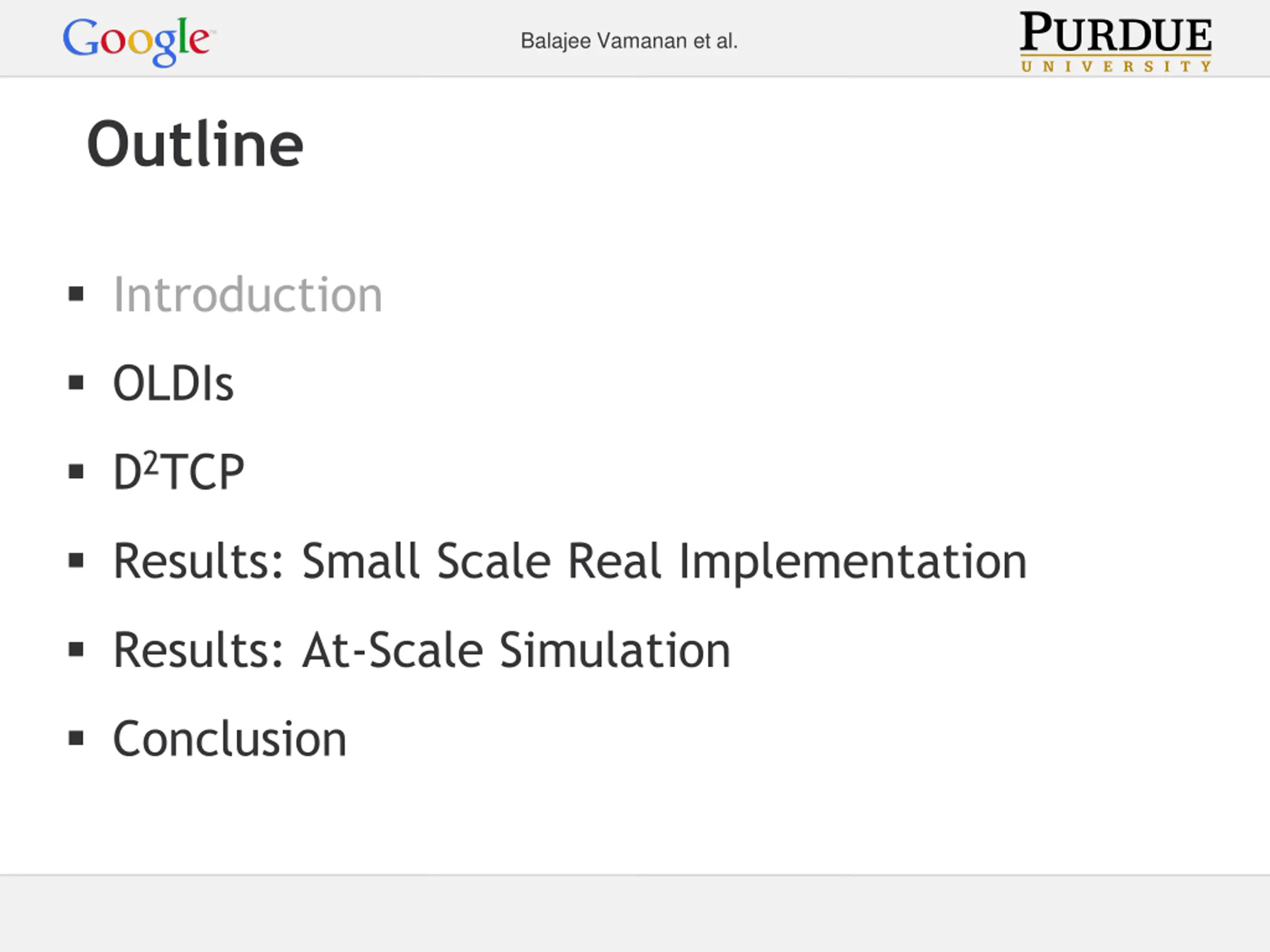 Balajee Vamanan et al. Outline Introduction OLDIs D2TCP Results: Small Scale Real Implementation Results: At-Scale Simulation Conclusion