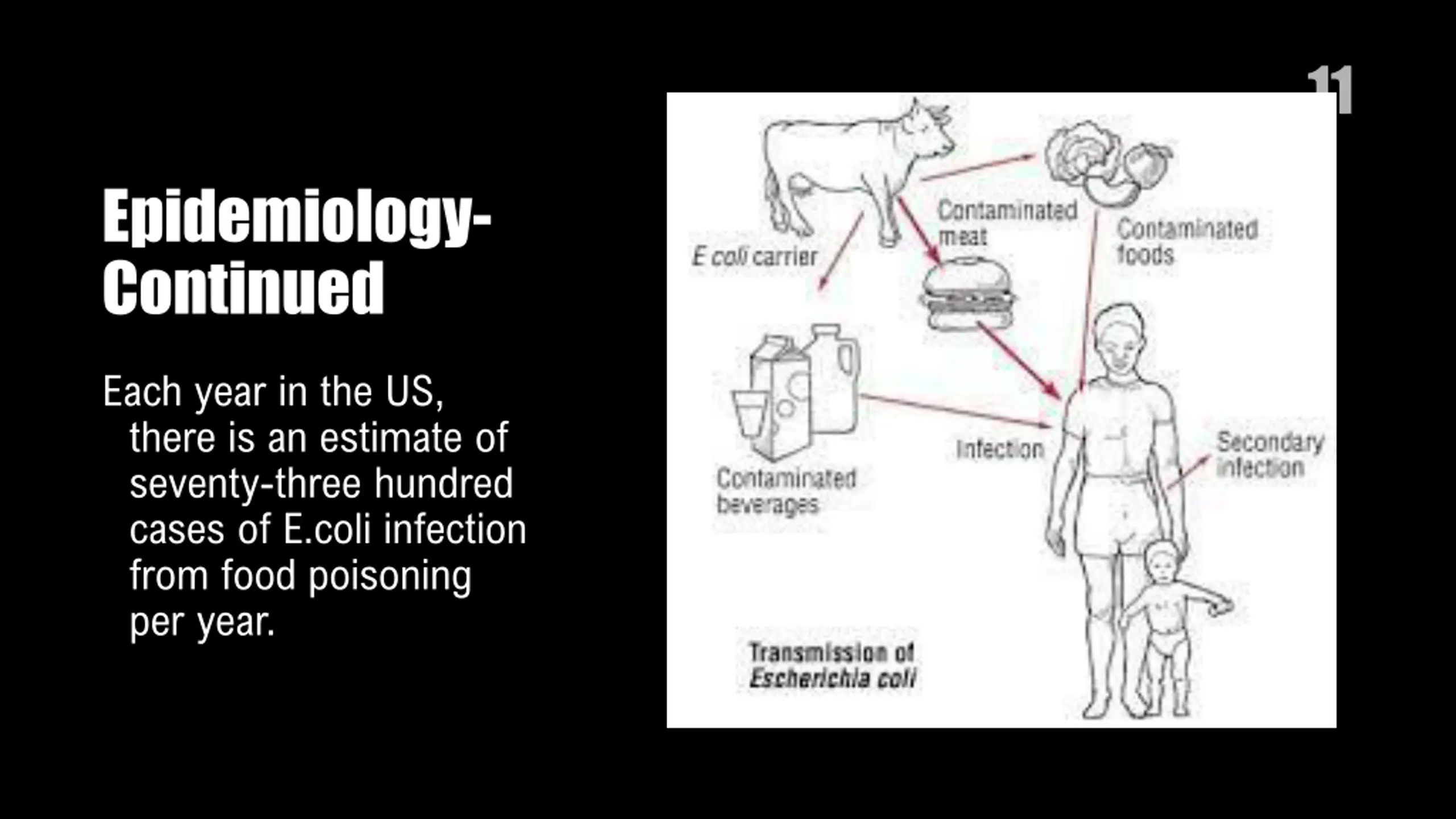 Epidemiology- Continued Each year in the US, there is an estimate of seventy-three hundred cases of E.coli infection from food poisoning per year.