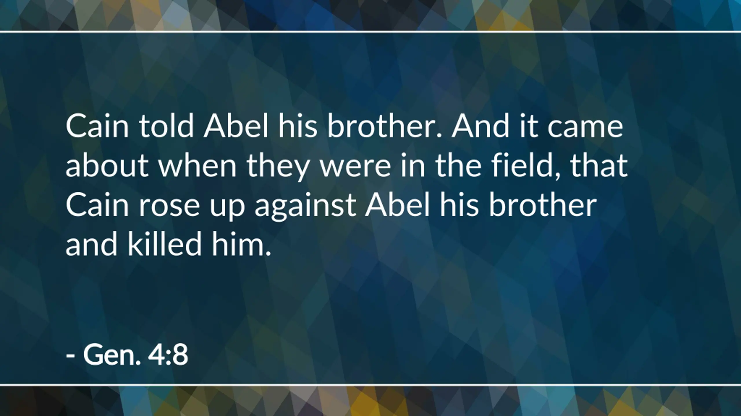 Cain told Abel his brother. And it came about when they were in the field, that Cain rose up against Abel his brother and killed him. - - Gen. 4:8 Gen. 4:8