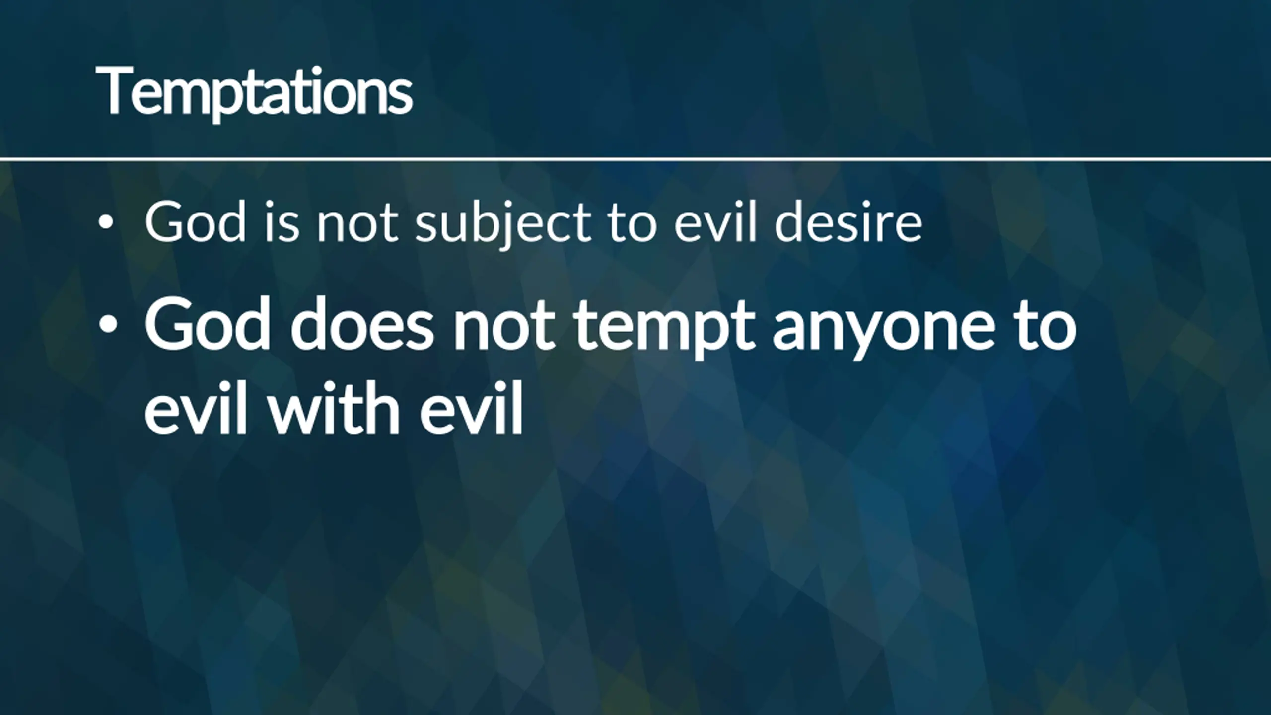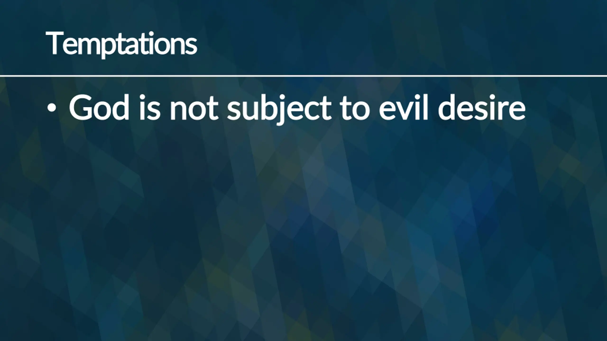 Temptations Temptations God is not subject to evil desire God does not tempt anyone to God does not tempt anyone to evil with evil with evil evil