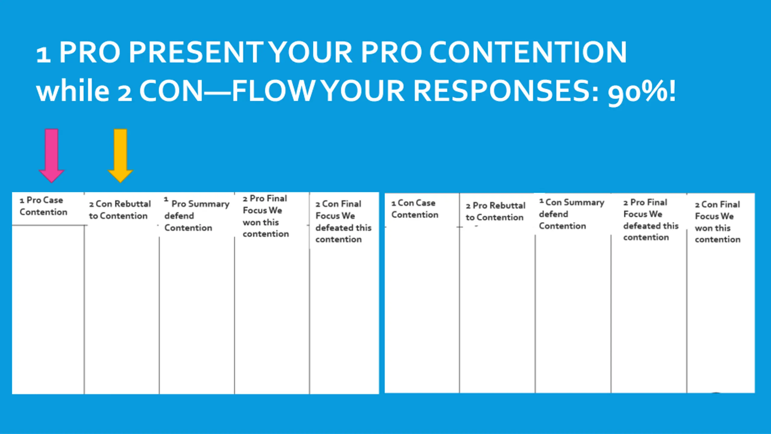1 PRO PRESENT YOUR PRO CONTENTION while 2 CON FLOW YOUR RESPONSES: 90%!