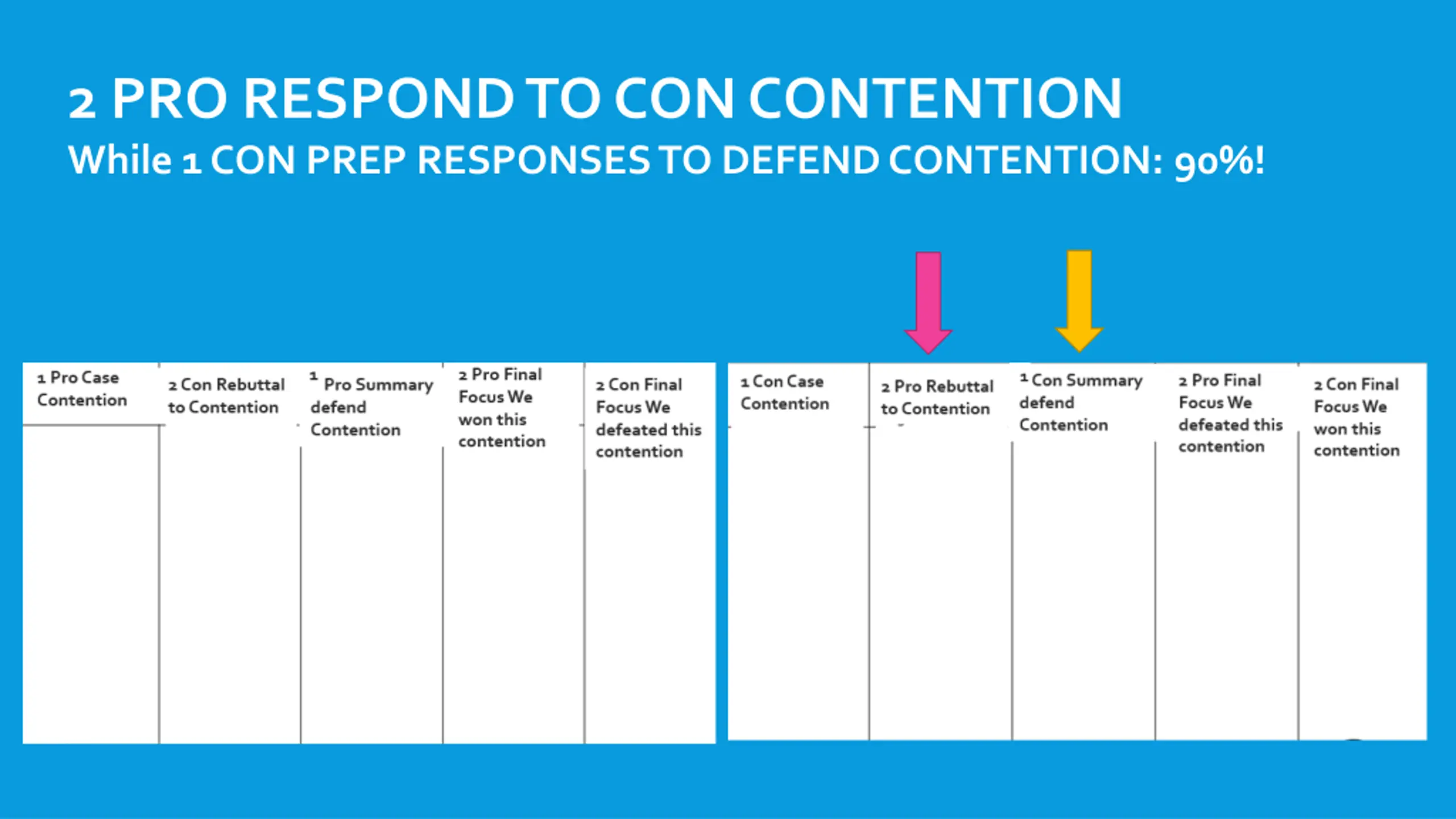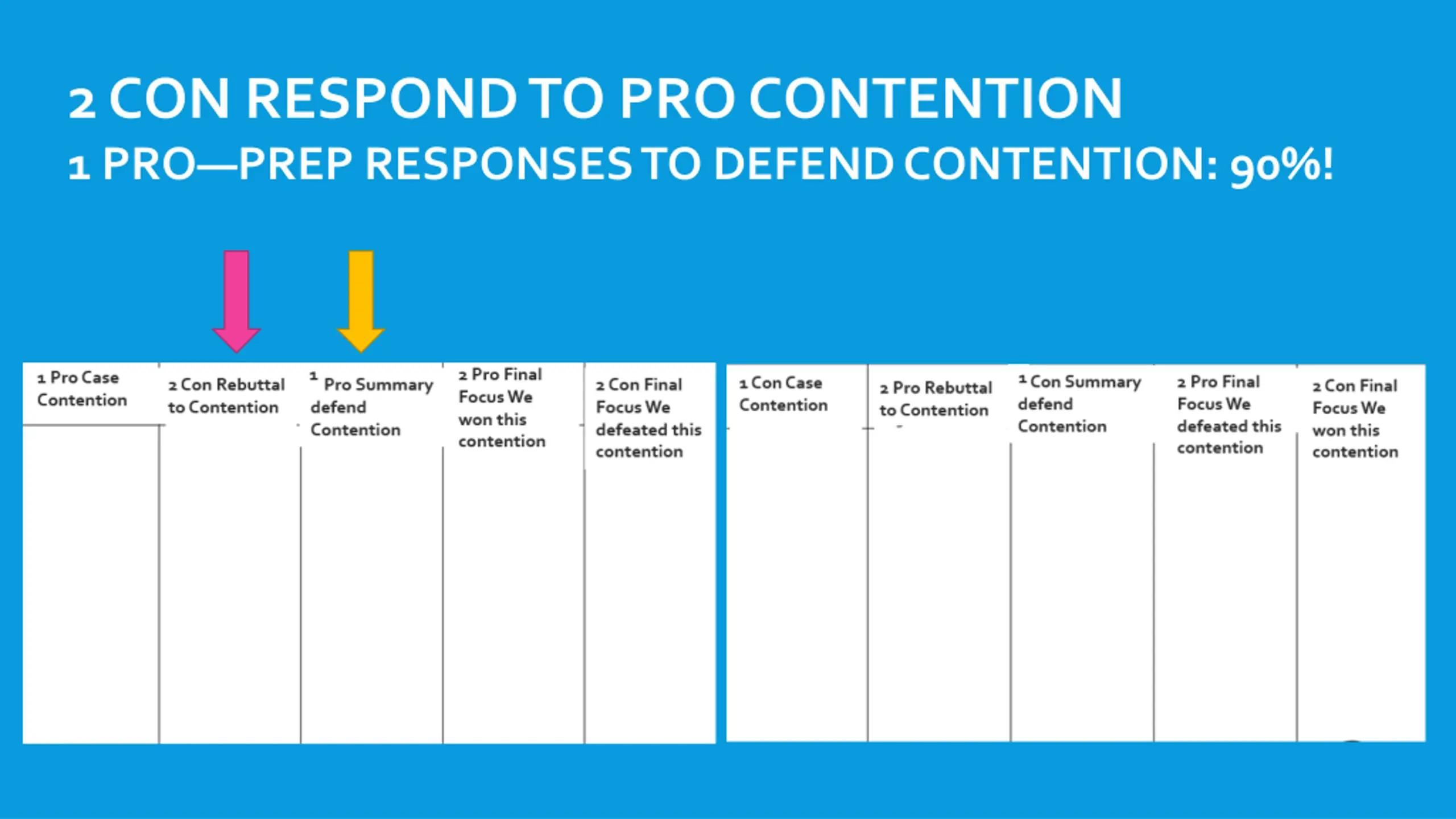 2 PRO RESPOND TO CON CONTENTION While 1 CON PREP RESPONSES TO DEFEND CONTENTION: 90%!