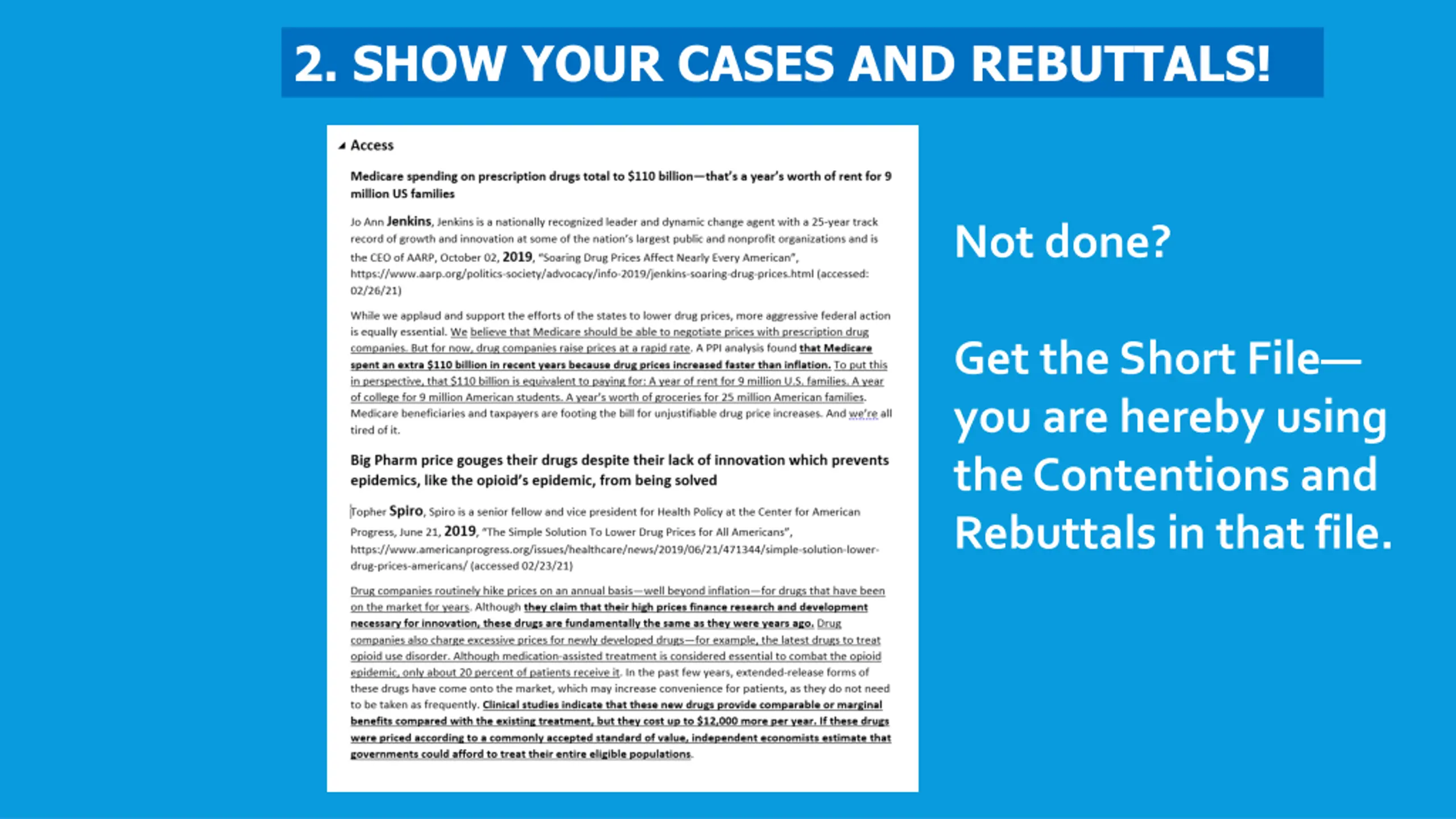 2. SHOW YOUR CASES AND REBUTTALS! Not done? Get the Short File you are hereby using the Contentions and Rebuttals in that file.