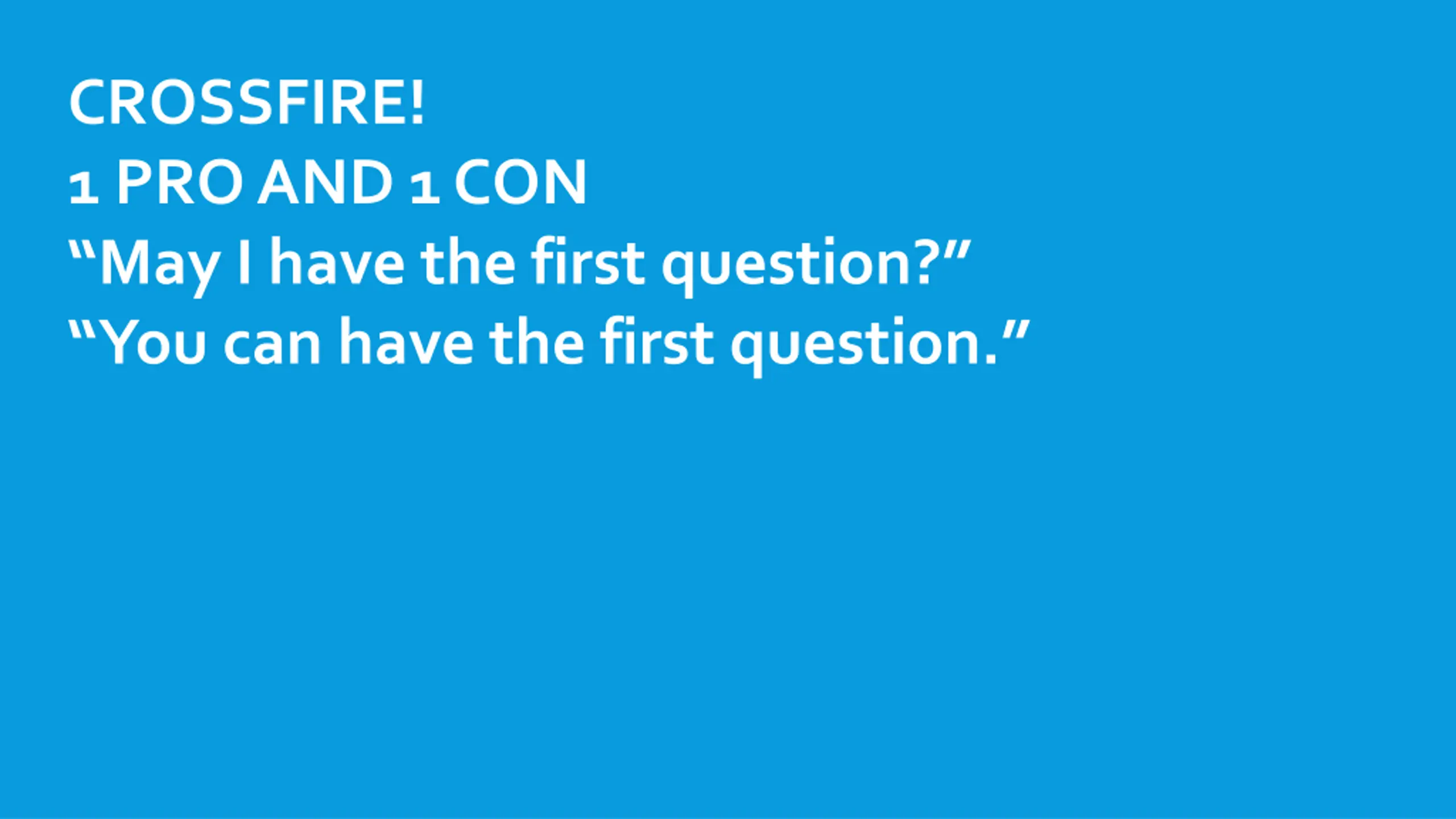 CROSSFIRE! 1 PRO AND 1 CON May I have the first question? You can have the first question.