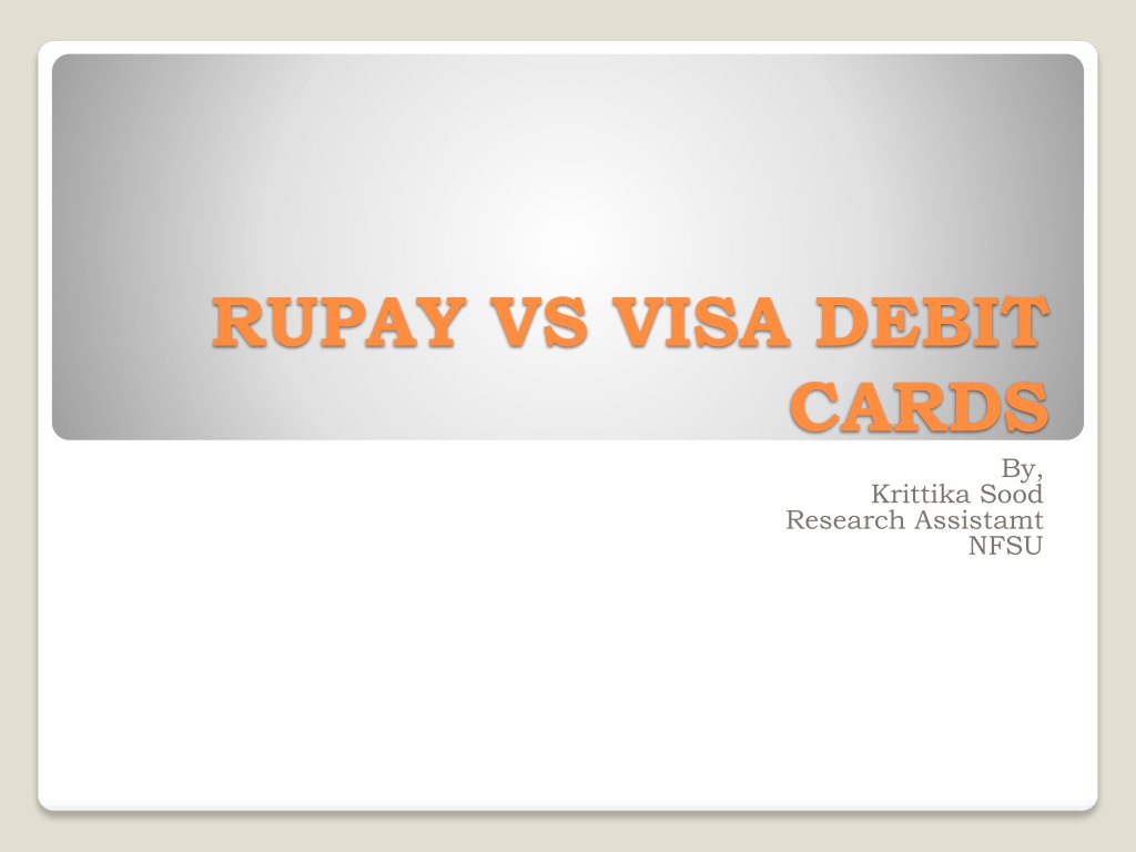 RUPAY VS VISA DEBIT CARDS By, Krittika Sood Research Assistamt NFSU