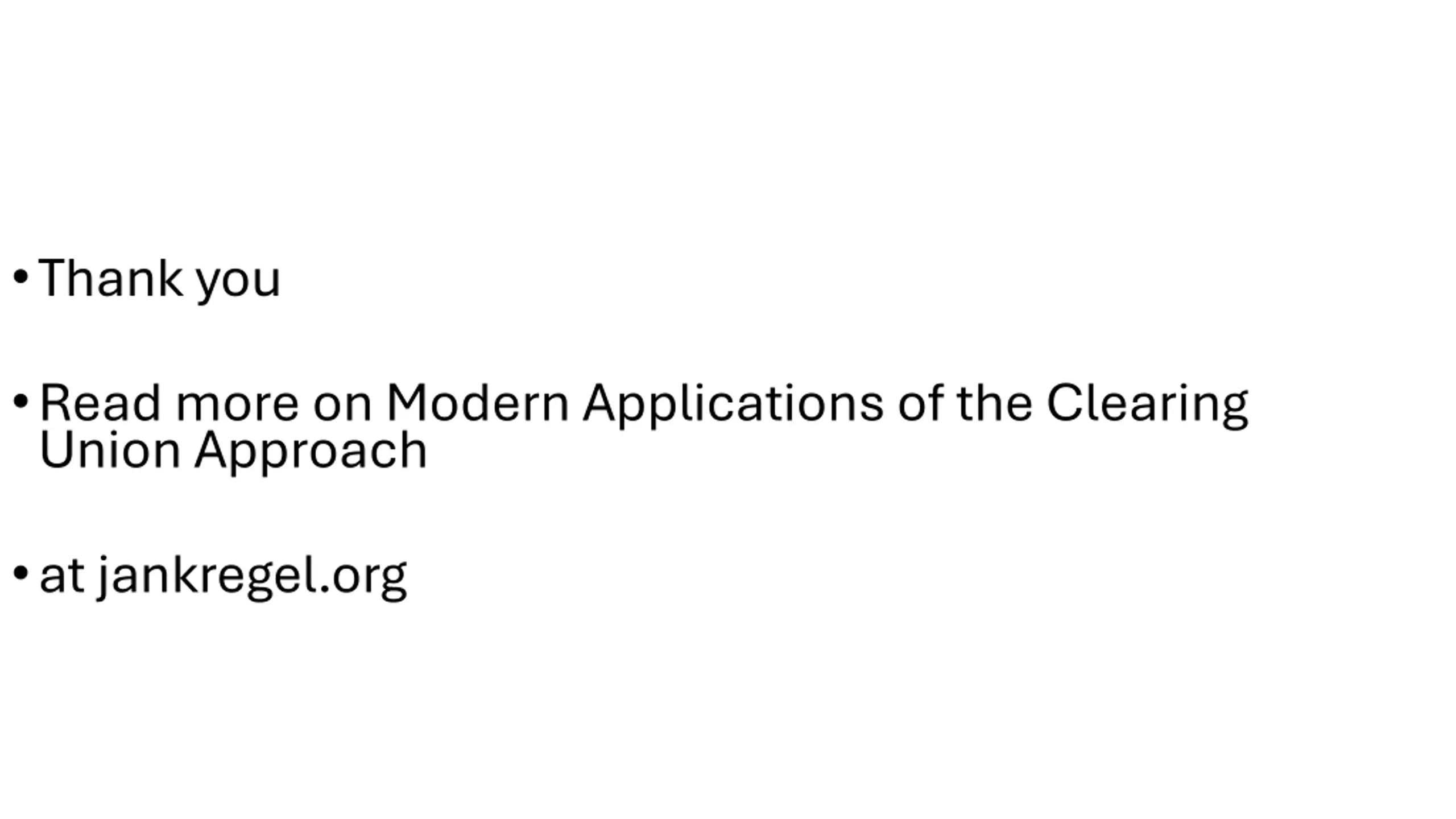Thank you Read more on Modern Applications of the Clearing Union Approach at jankregel.org