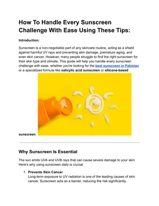 Debunking Common Sunscreen Myths: What You Need to Know: Introduction: Sunscreen is a crucial part of any skincare routine, yet many myths and misconceptions surround its use. Whether you're searching for the best sunscreen in Pakistan or wondering if sunscreen is necessary on cloudy days, this article will help you separate fact from fiction. Understanding sunscreen's role in skin protection is vital, especially in regions with high sun exposure like Pakistan. Myth 1: Sunscreen is Only for Sunny Days Many people believe that sunscreen is only needed when the sun is shining. However, UV rays can penetrate through clouds and even windows. Applying sunscreen in Pakistan, where the sun is intense year-round, is essential for maintaining healthy skin. Whether it s cloudy or cold, a non-greasy sunscreen should always be part of your daily routine.
