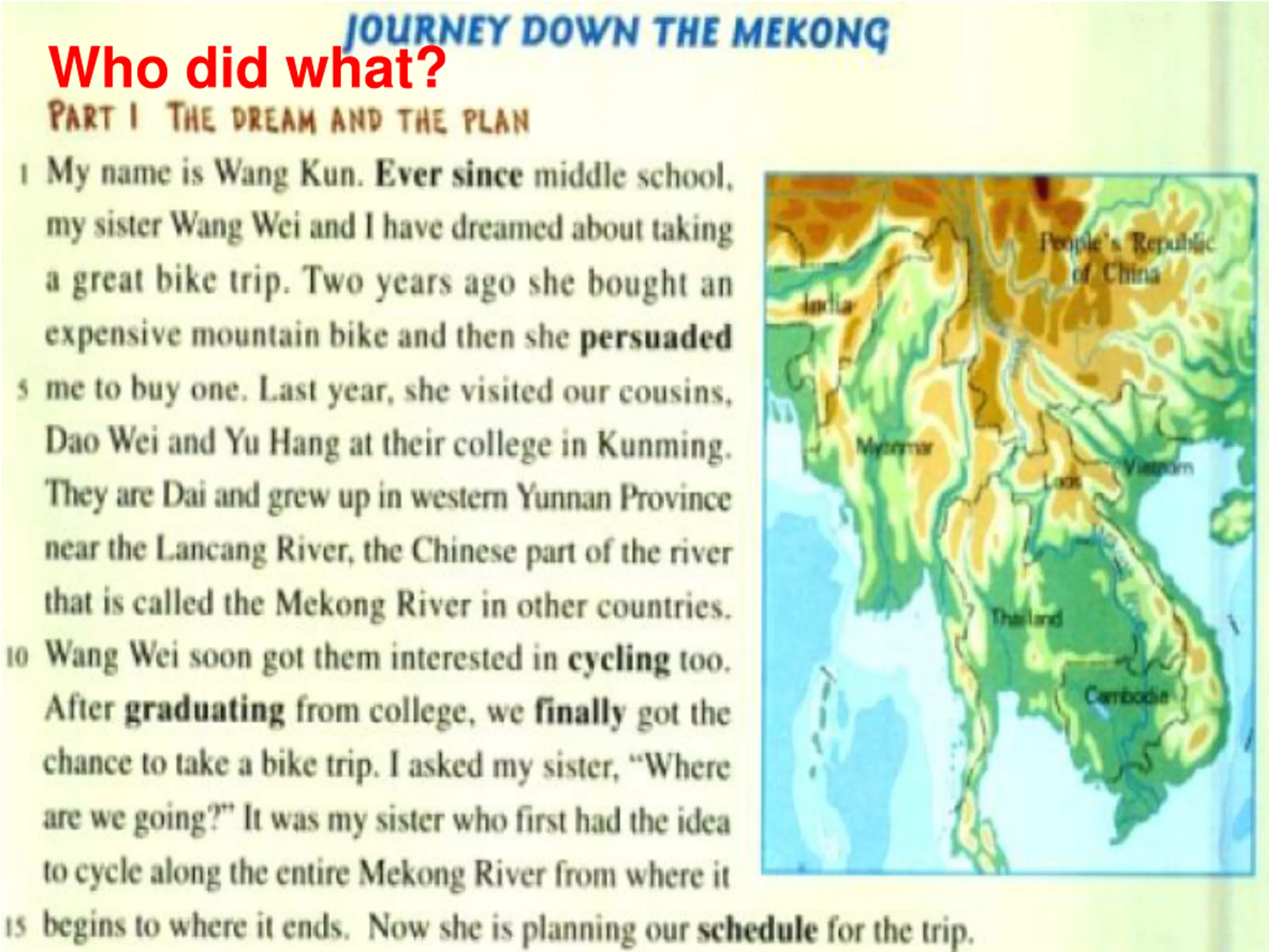 JOURNEY DOWN THE MEKONG (PART 1 THE DREAM AND THE PLAN) How to get the main idea of a narrative passage? M1U3