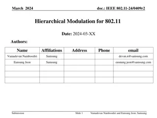 Jan 2023 doc.: IEEE 802. 11-23-0075-00-0uhr Recap Standard Impact [2] Train@AP Capability AP needs training capability, ~3.24M FLOPs (n=10) Non-AP STAs need inference capability, ~9K FLOPs (~256-FFT) NN Architecture Standardized basic components Extra signaling to support more configurations Non-AP STAs > AP : Training data report Real-time report Batch report AP > non-AP STAs : NN parameter (weights and bias) deployment Unicast or broadcast to refresh NN parameters (4770 parameters, ~5KB using 8-bit quantization) AP1 AP Data report Model deployment STA3 STA 1 STA3 STA 3 Inference@STA STA3 STA 2 Historical Observations Transmit or Wait Neural Network (NN) DRL-based channel access [2]: learns the wireless environment via NN makes channel access decisions based on local observations (CCA, packet delay, ) Submission Slide 3 Ziyang Guo, Huawei