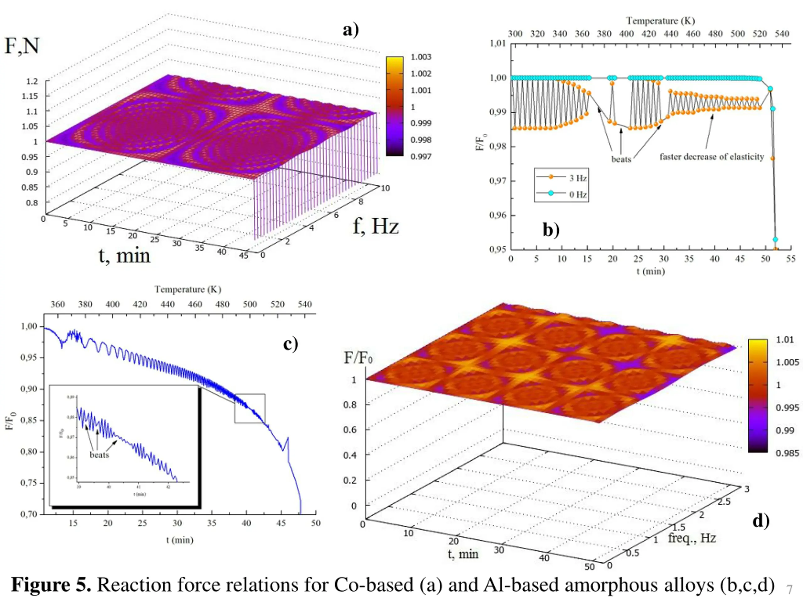 a) b) c) d) Figure 5. Reaction force relations for Co-based (a) and Al-based amorphous alloys (b,c,d) 7
