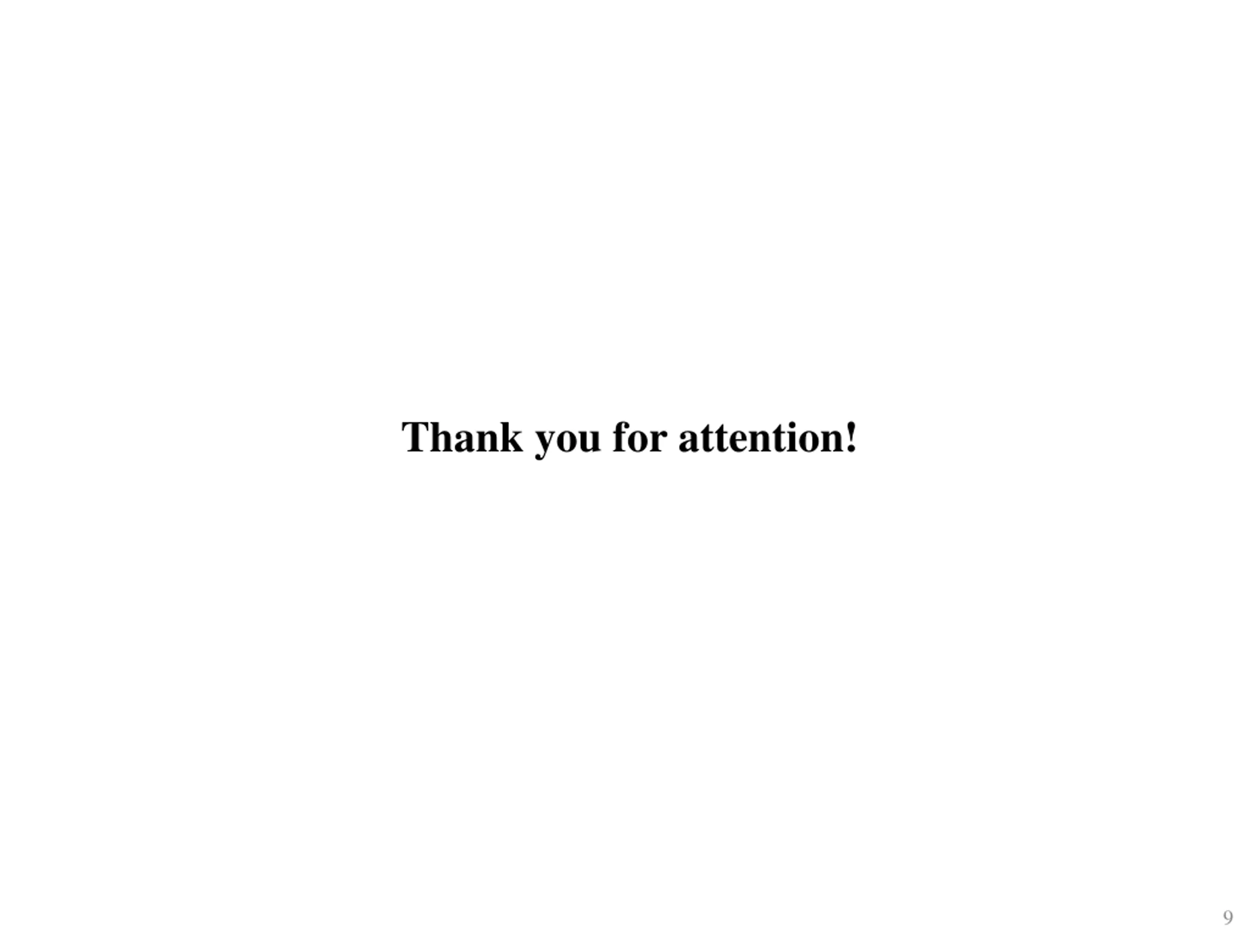 Conclusions 1) Thermal activation and cyclic loading lead to faster deformation of the Cu-Pd-P metallic glassy specimens at a fixed frequency that can be described by a classical mechanical model. Herewith, the occurrence of the wave areas (nodes and antinodes), wherein elastic force is constant(regions of periodic stability), is predictable for the specimen. 2) Received relations can be used for further investigations not only for DMA but as a basement for comprehensive study in frames of different fields of physics. 8