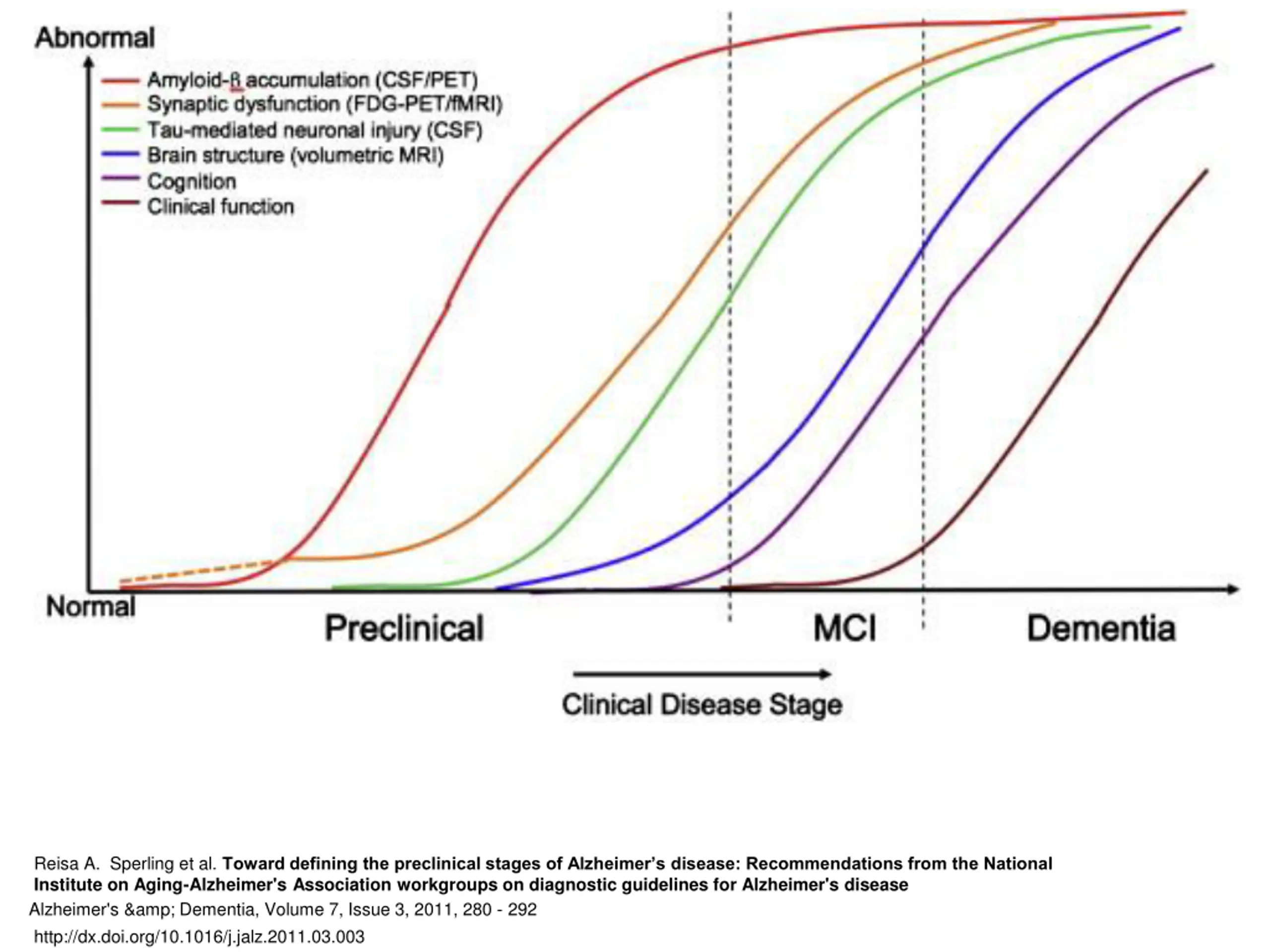 Reisa A. Sperling et al. Toward defining the preclinical stages of Alzheimers disease: Recommendations from the National Institute on Aging-Alzheimer's Association workgroups on diagnostic guidelines for Alzheimer's disease Alzheimer's & Dementia, Volume 7, Issue 3, 2011, 280 - 292 http://dx.doi.org/10.1016/j.jalz.2011.03.003