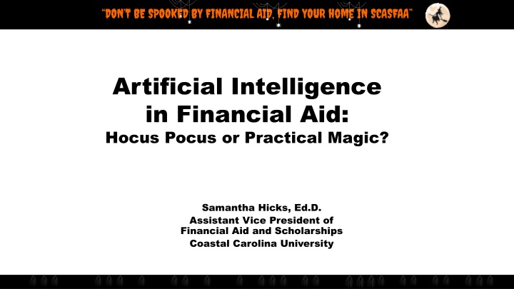 DONT BE SPOOKED BY FINANCIAL AID, FIND YOUR home IN SCASFAA Artificial Intelligence in Financial Aid: Hocus Pocus or Practical Magic? Samantha Hicks, Ed.D. Assistant Vice President of Financial Aid and Scholarships Coastal Carolina University