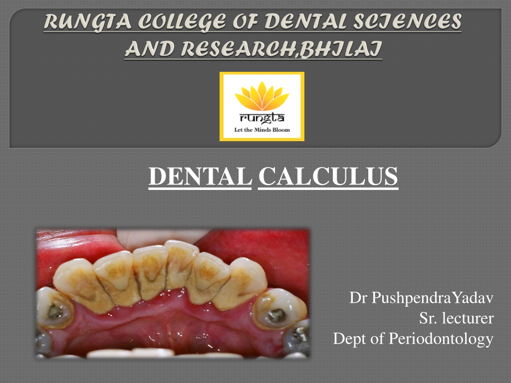 DENTALCALCULUS Dr PushpendraYadav Sr. lecturer Dept of Periodontology