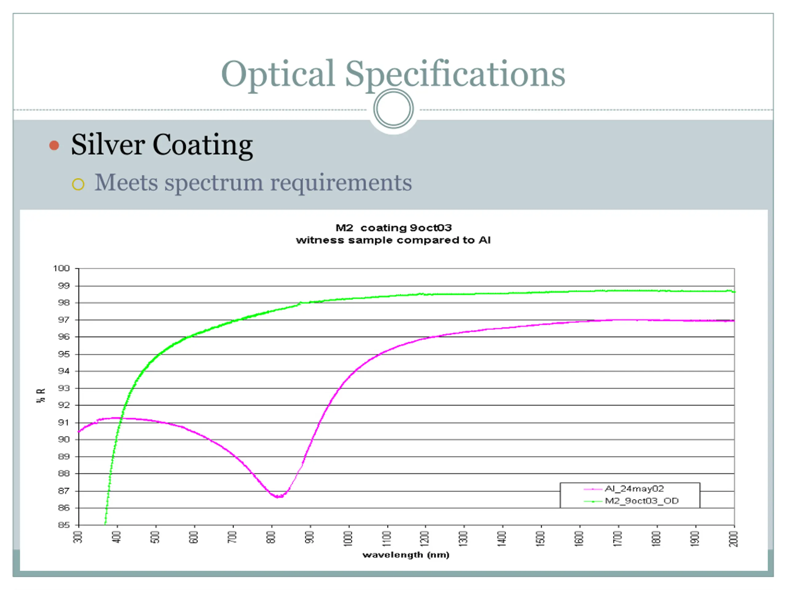 Optical Specifications Silver Coating Meets spectrum requirements