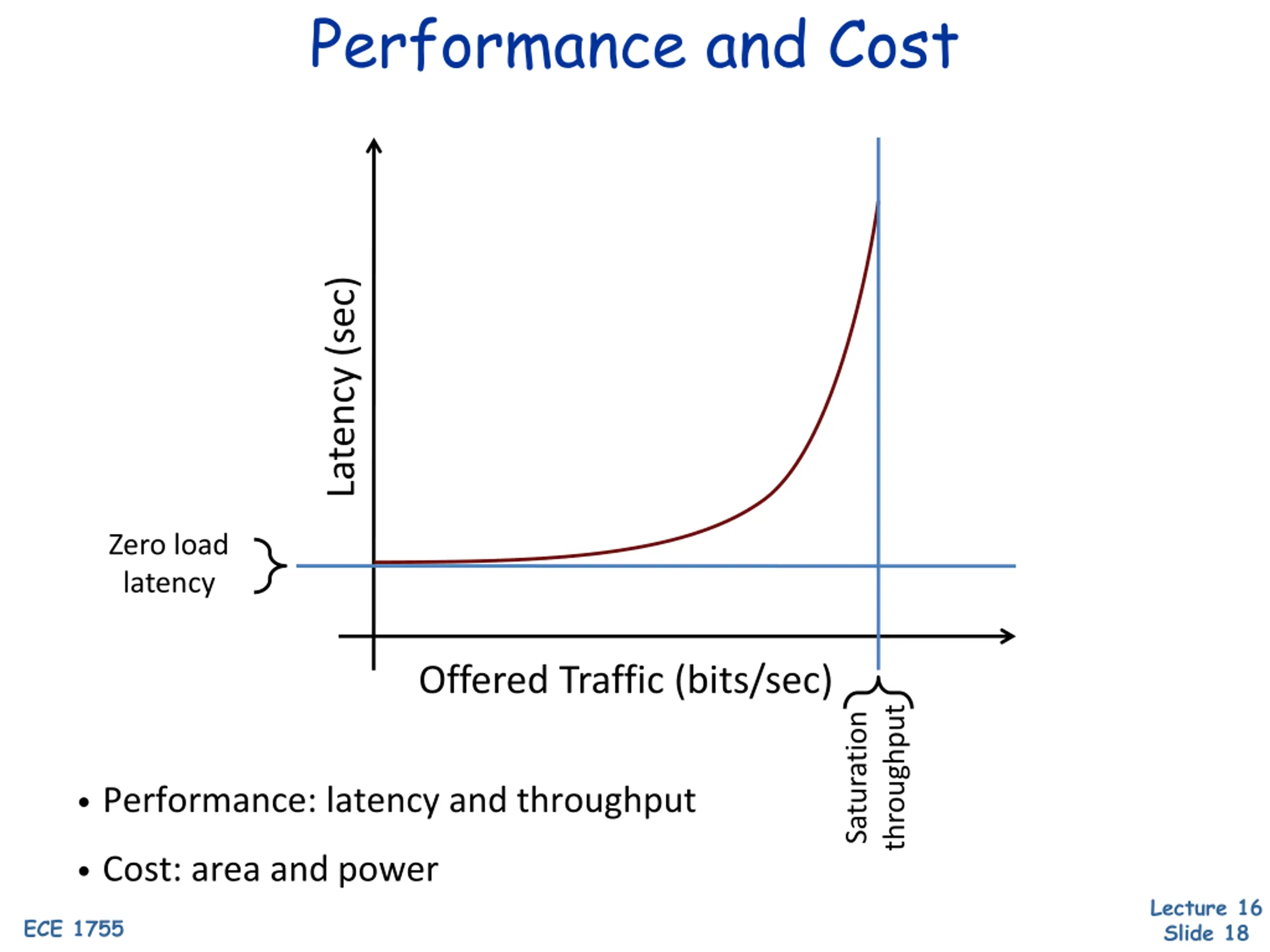 Performance and Cost Latency (sec) Zero load latency Offered Traffic (bits/sec) Saturation throughput Performance: latency and throughput Cost: area and power Lecture 16 Slide 18 ECE 1755