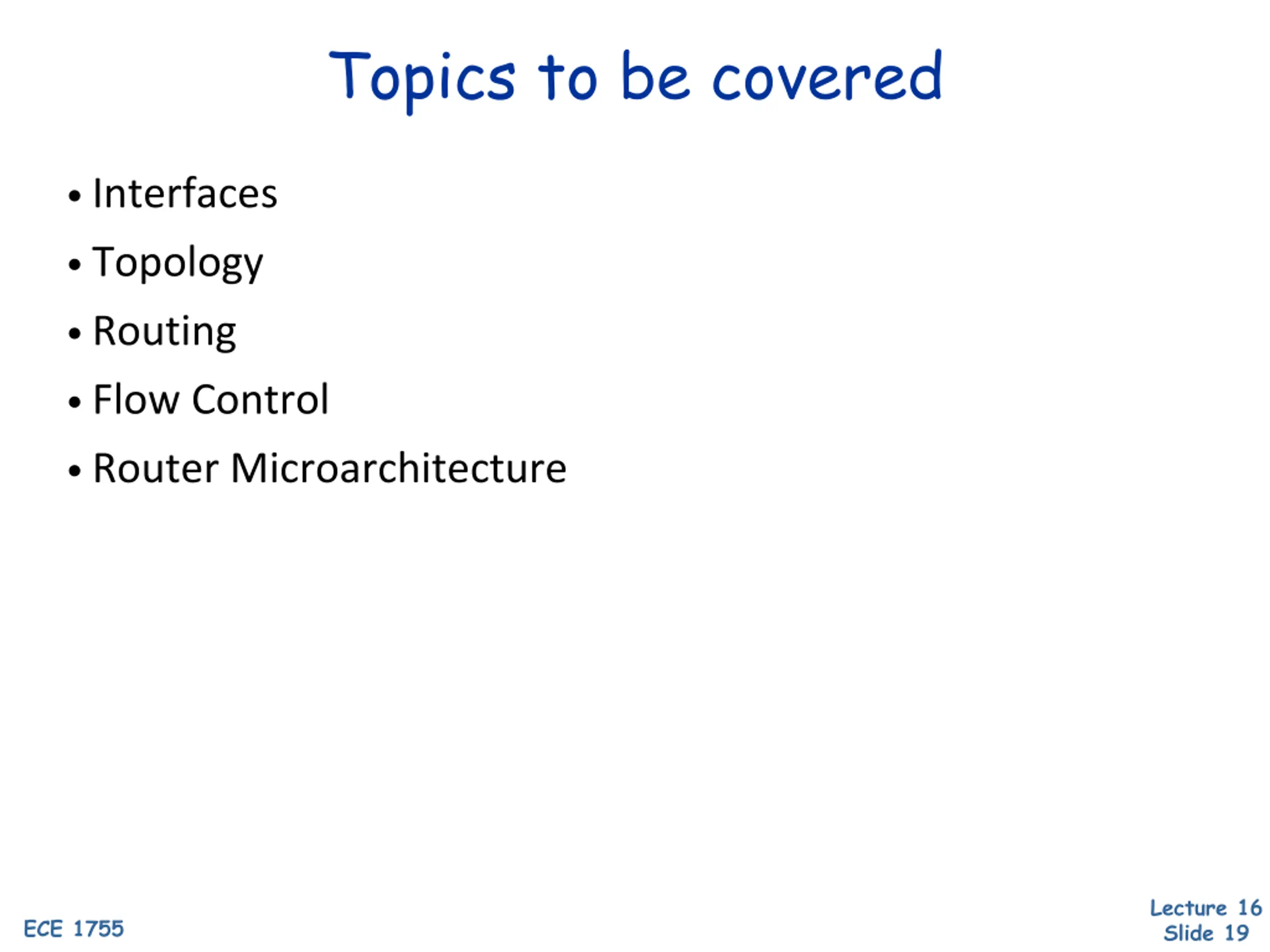 Topics to be covered Interfaces Topology Routing Flow Control Router Microarchitecture Lecture 16 Slide 19 ECE 1755