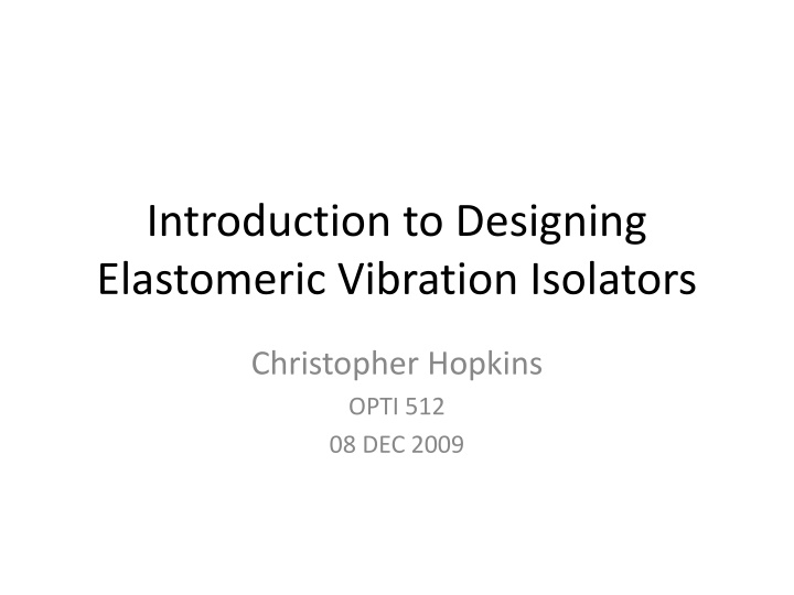 Introduction to Designing Elastomeric Vibration Isolators Christopher Hopkins OPTI 512 08 DEC 2009
