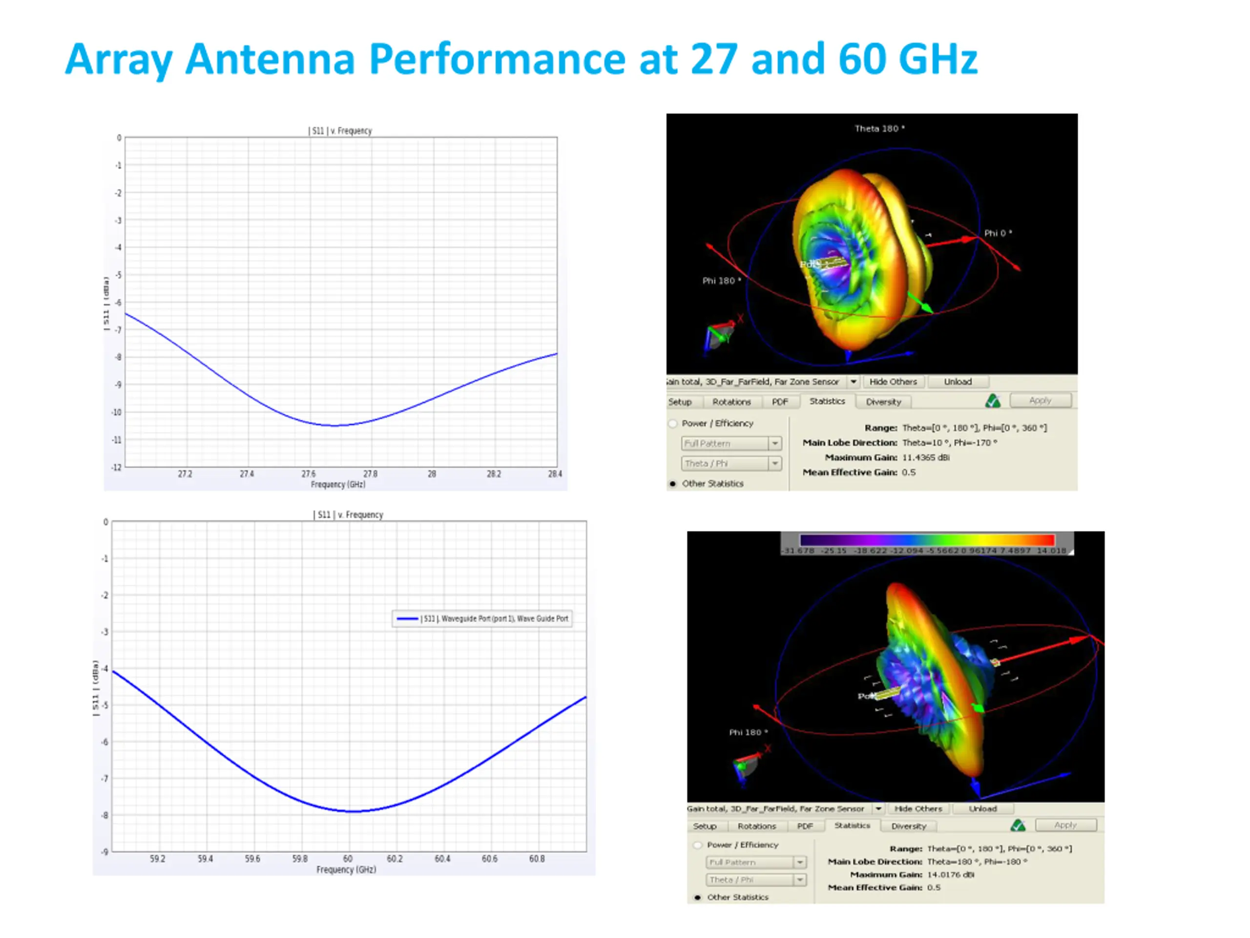 Gain- 11.43dBi Array Antenna Performance at 27 and 60 GHz