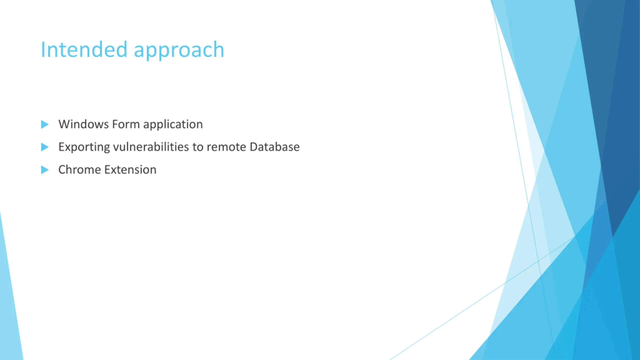 Intended approach Windows Form application Exporting vulnerabilities to remote Database Chrome Extension