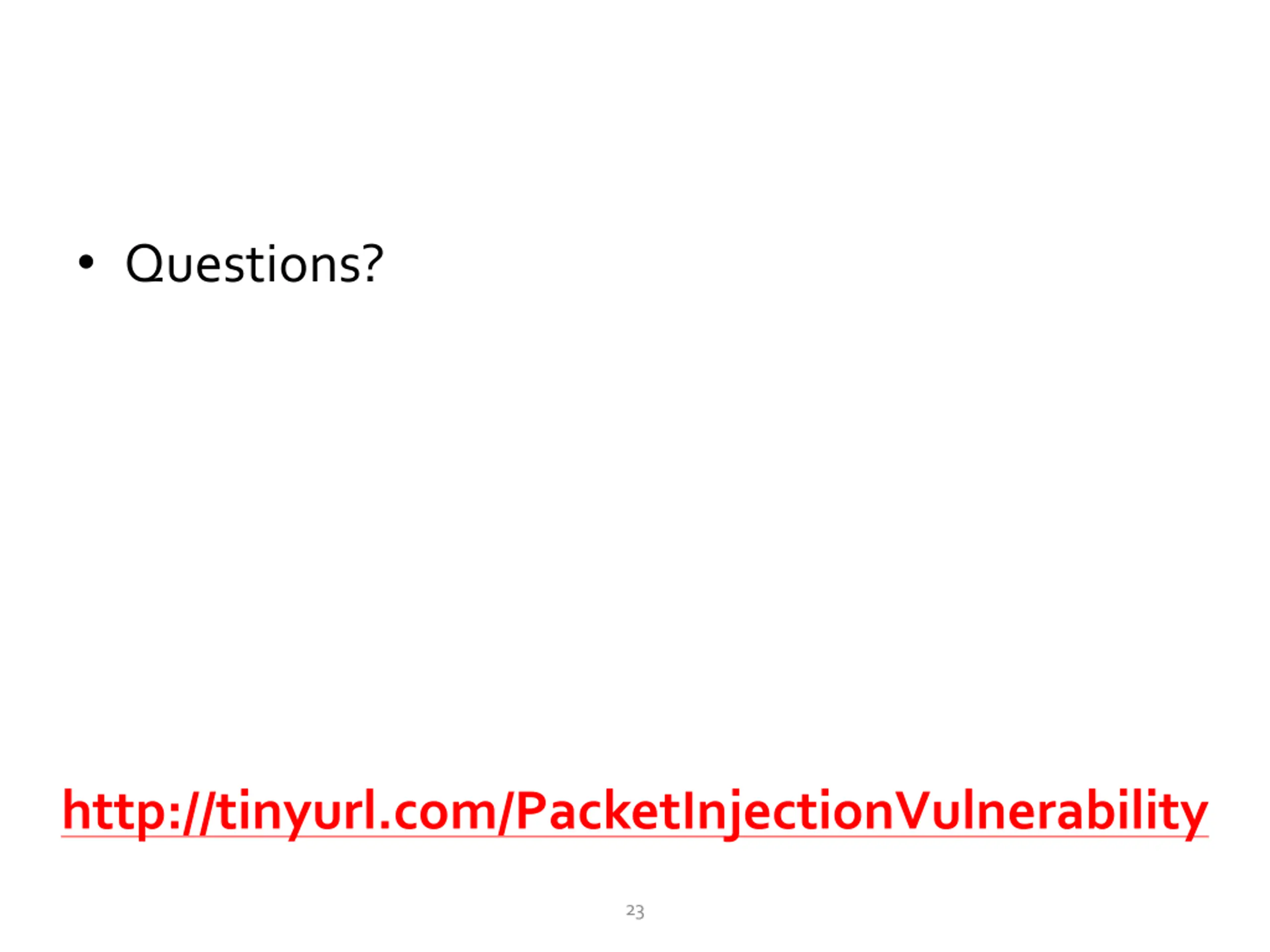 Questions? http://tinyurl.com/PacketInjectionVulnerability 23