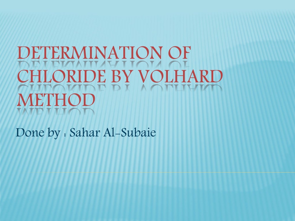 DETERMINATION OF CHLORIDE BY VOLHARD METHOD Done by : Sahar Al-Subaie
