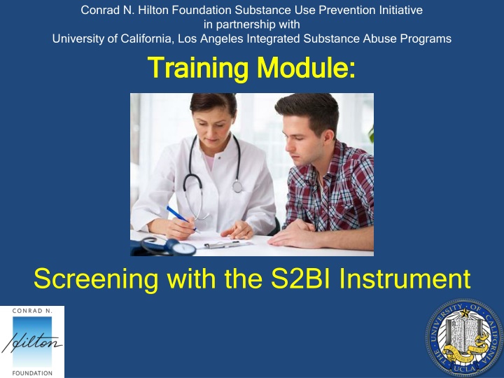 Conrad N. Hilton Foundation Substance Use Prevention Initiative in partnership with University of California, Los Angeles Integrated Substance Abuse Programs Training Module: Training Module: Screening with the S2BI Instrument