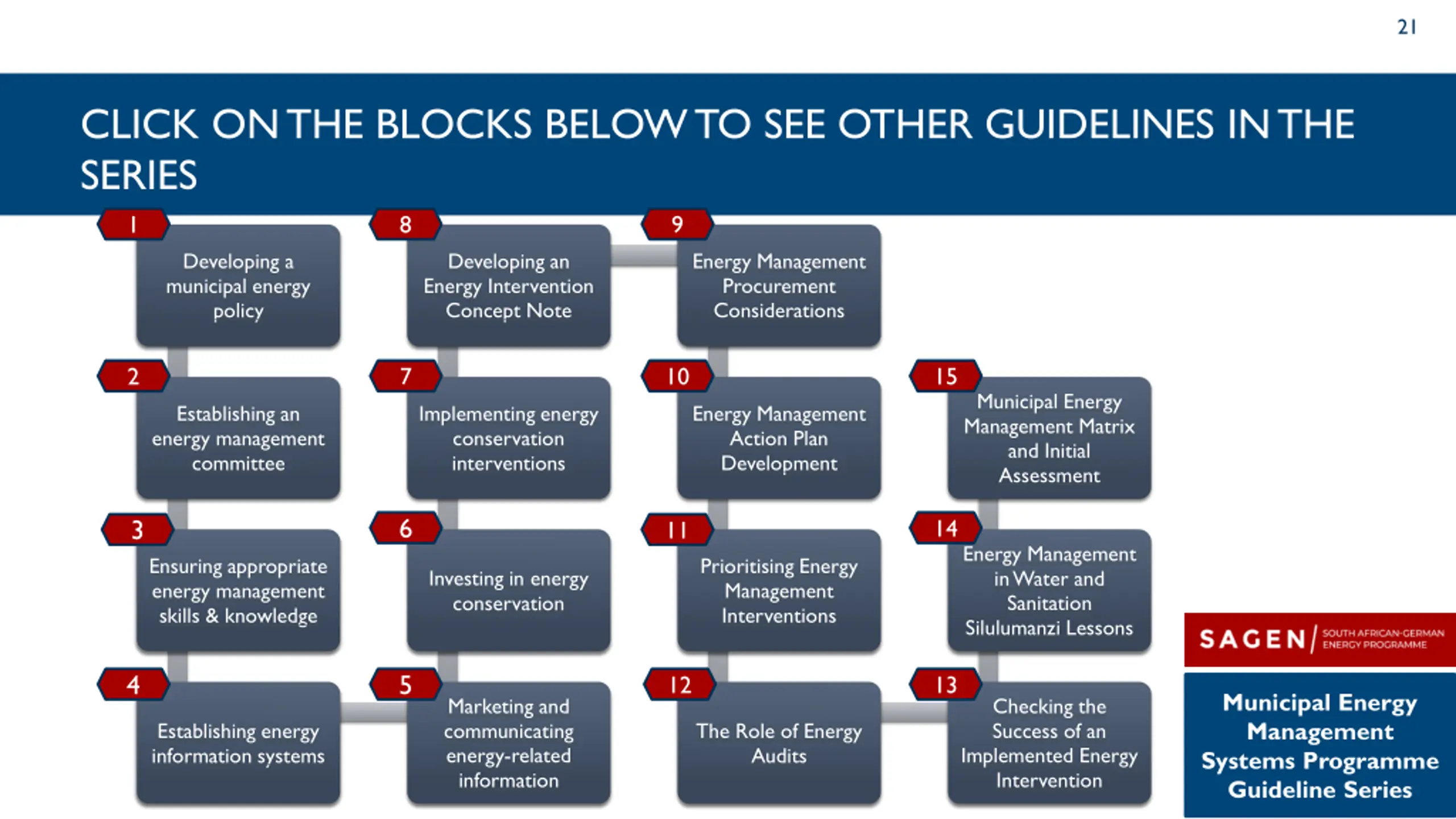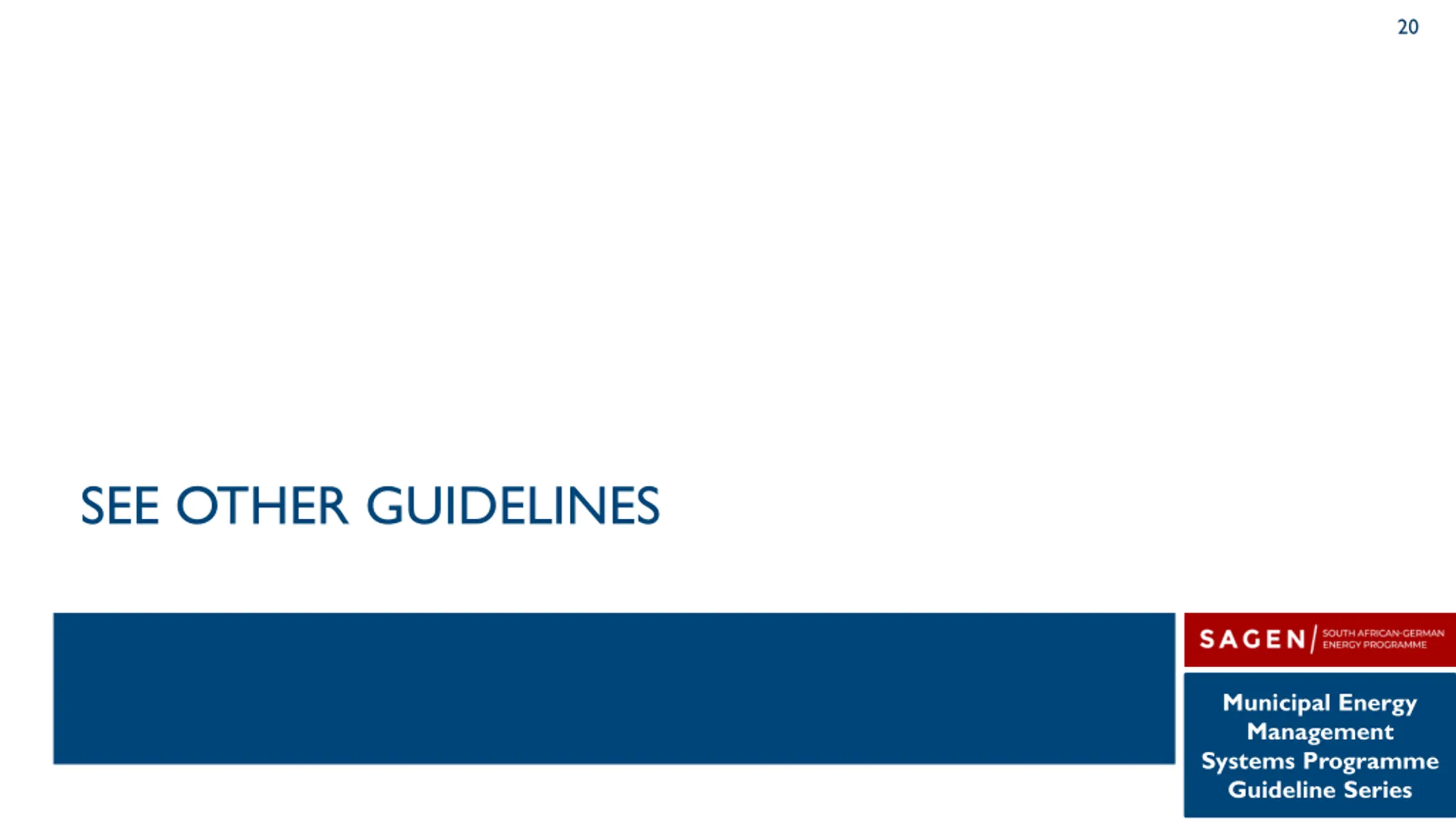 20 SEE OTHER GUIDELINES Municipal Energy Management Systems Programme Guideline Series