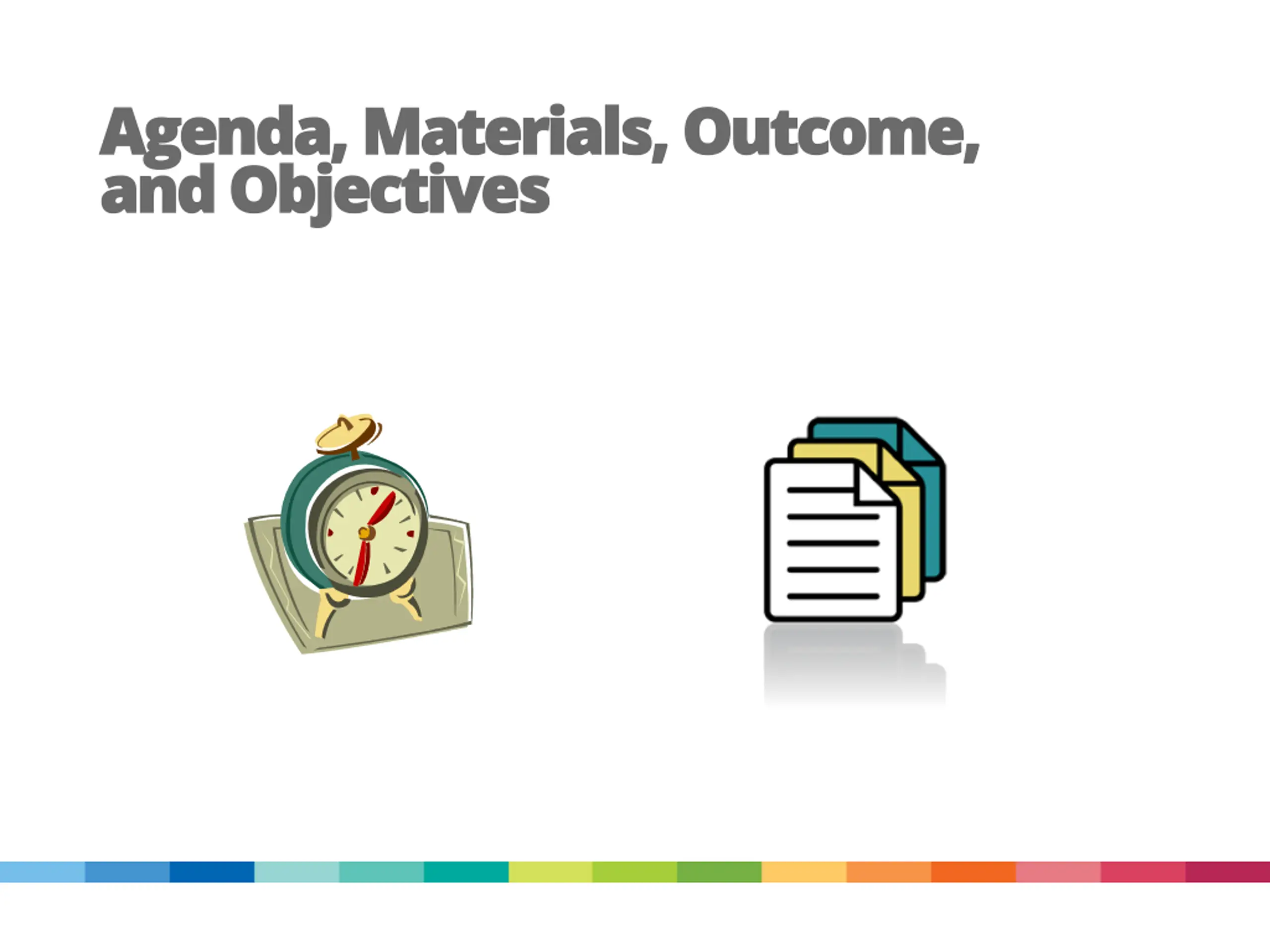 Agenda, Materials, Outcome, Agenda, Materials, Outcome, and Objectives and Objectives