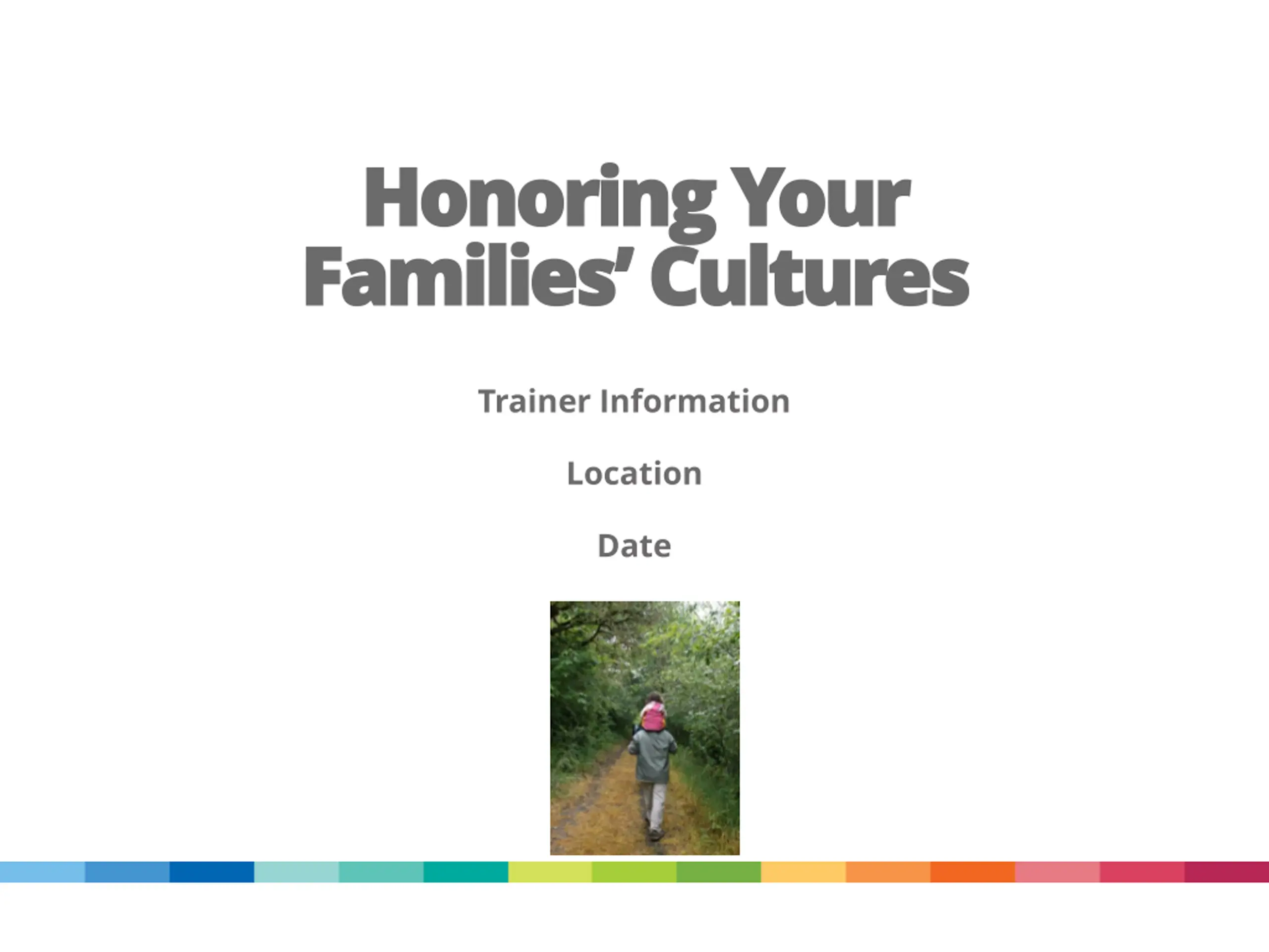 Honoring Your Honoring Your Families Cultures Families Cultures Trainer Information Location Date
