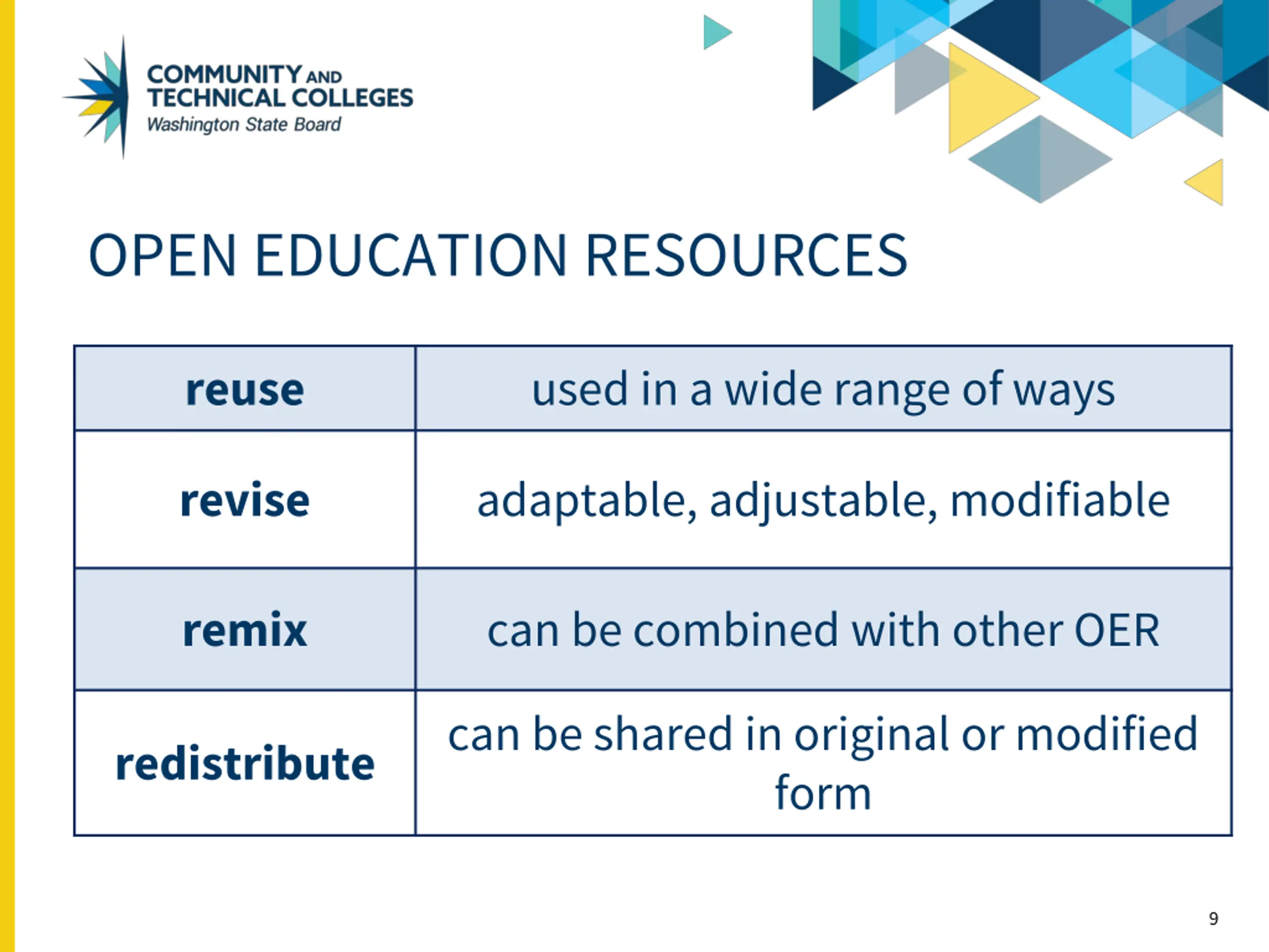 OPEN EDUCATION RESOURCES reuse used in a wide range of ways revise adaptable, adjustable, modifiable remix can be combined with other OER can be shared in original or modified form redistribute 9