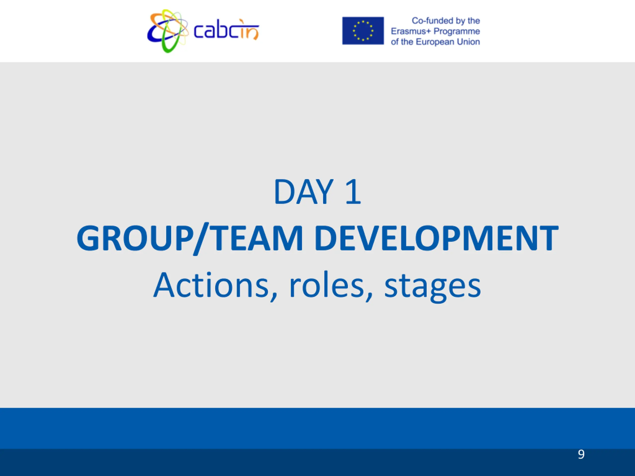 DAY 1 GROUP/TEAM DEVELOPMENT Actions, roles, stages 9