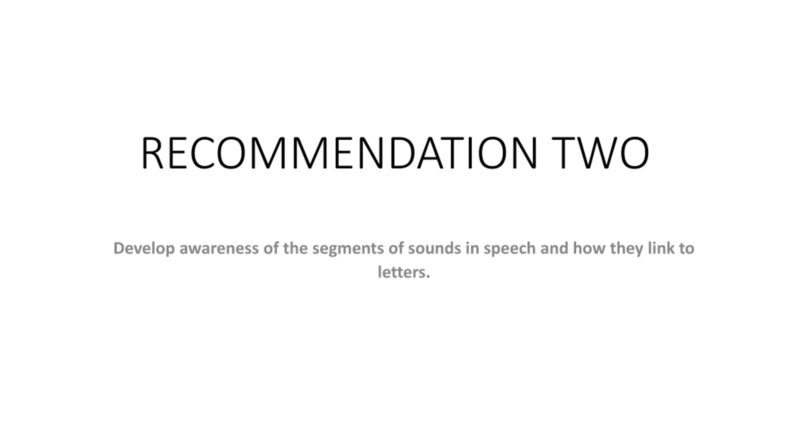 RECOMMENDATION TWO Develop awareness of the segments of sounds in speech and how they link to letters.