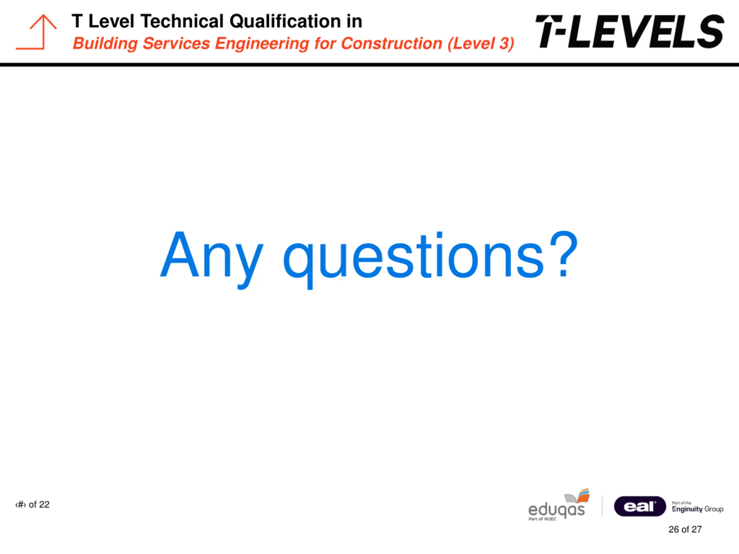 T Level Technical Qualification in Building Services Engineering for Construction (Level 3) Any questions? # of 22 26 of 27