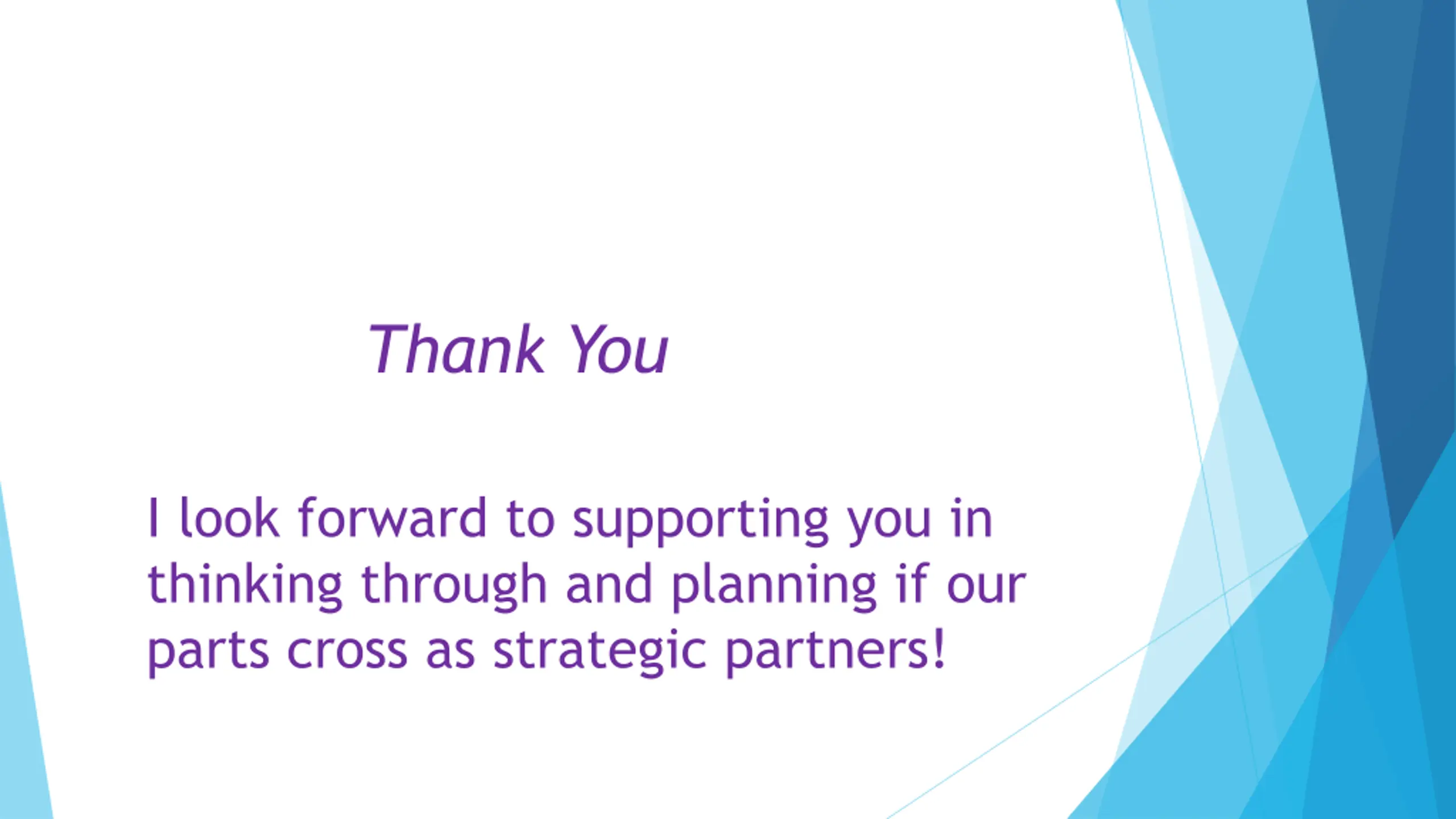 Thank You I look forward to supporting you in thinking through and planning if our parts cross as strategic partners!