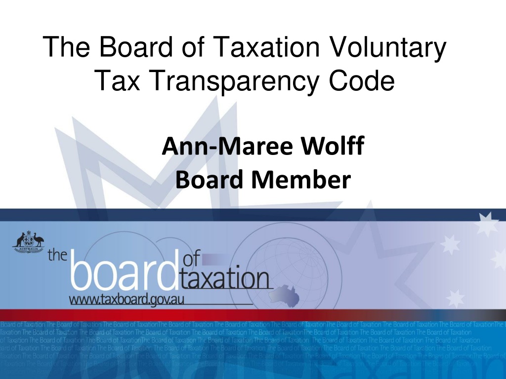 The Board of Taxation Voluntary Tax Transparency Code Ann-Maree Wolff Board Member 1