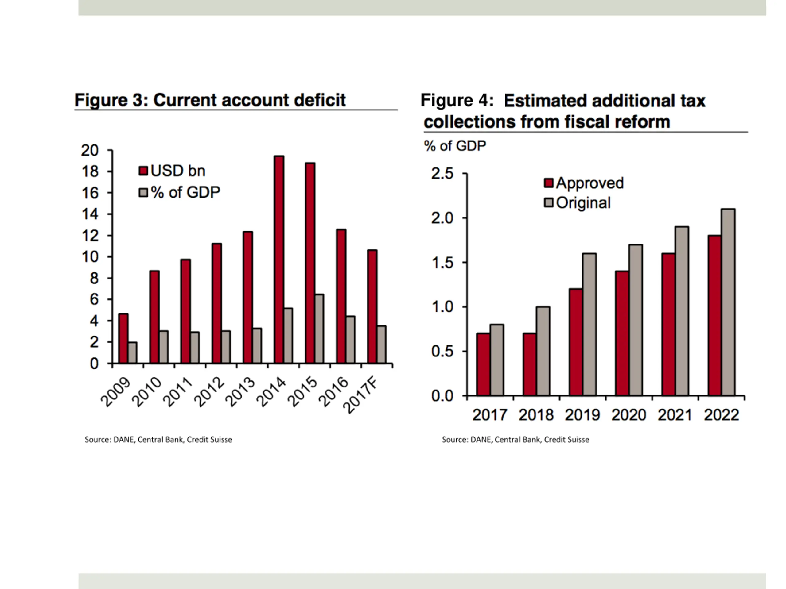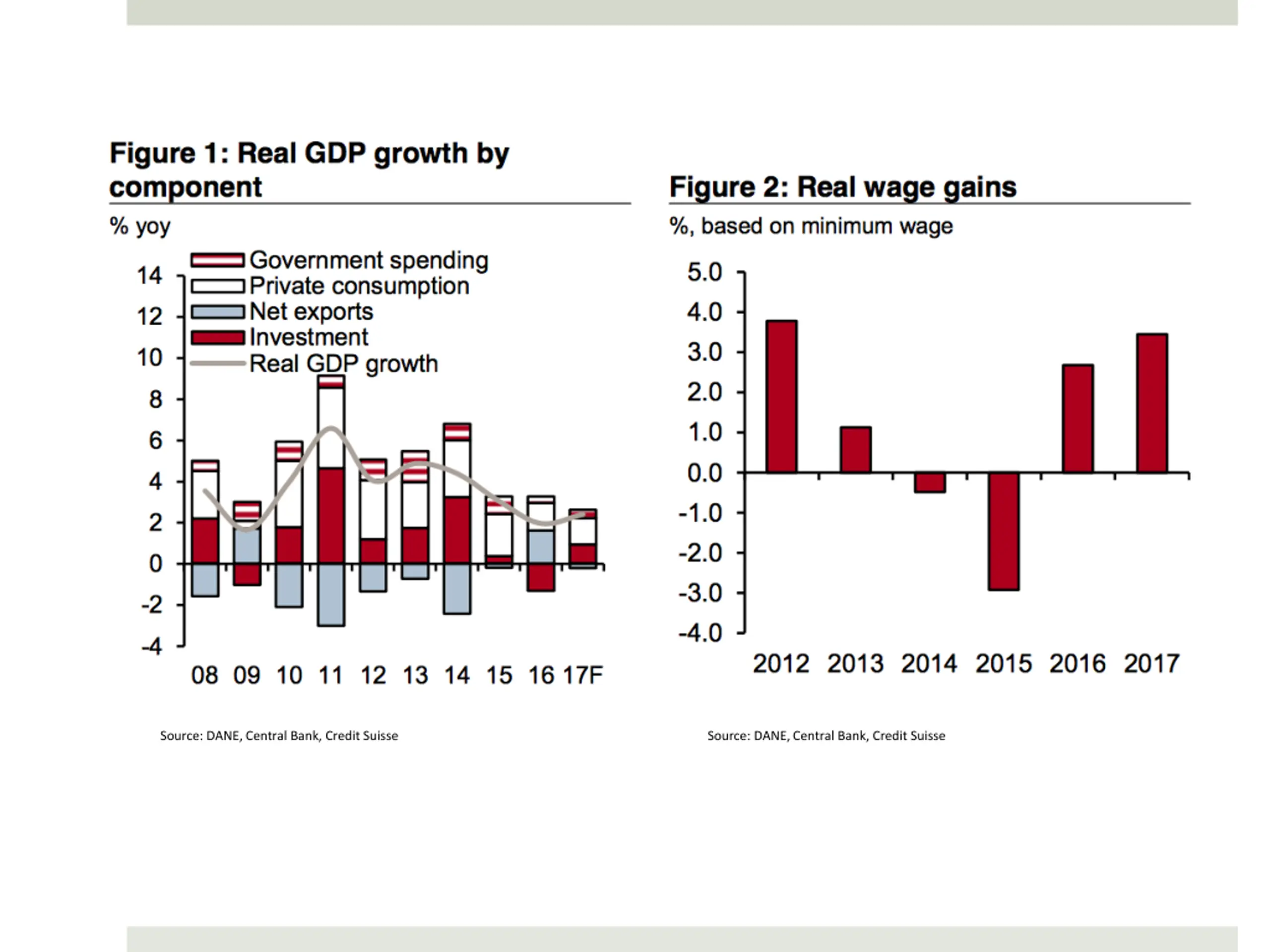 Source: DANE, Central Bank, Credit Suisse Source: DANE, Central Bank, Credit Suisse