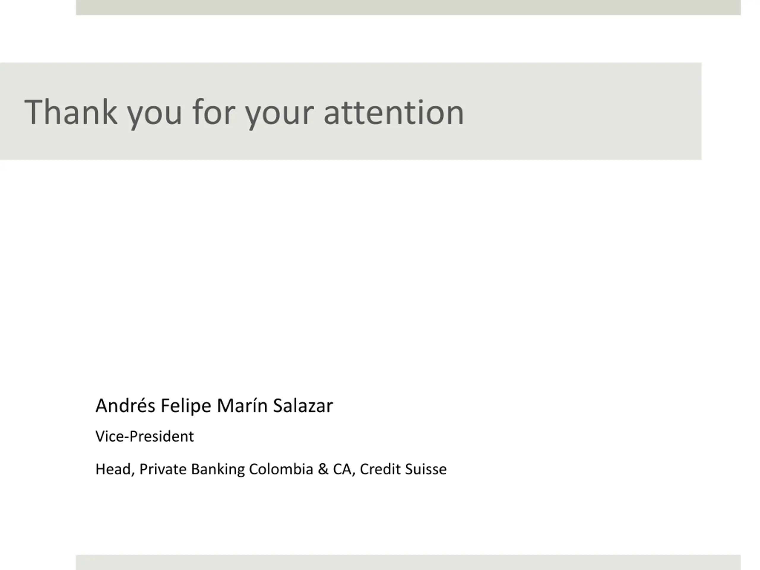 Thank you for your attention Andr s Felipe Mar n Salazar Vice-President Head, Private Banking Colombia & CA, Credit Suisse