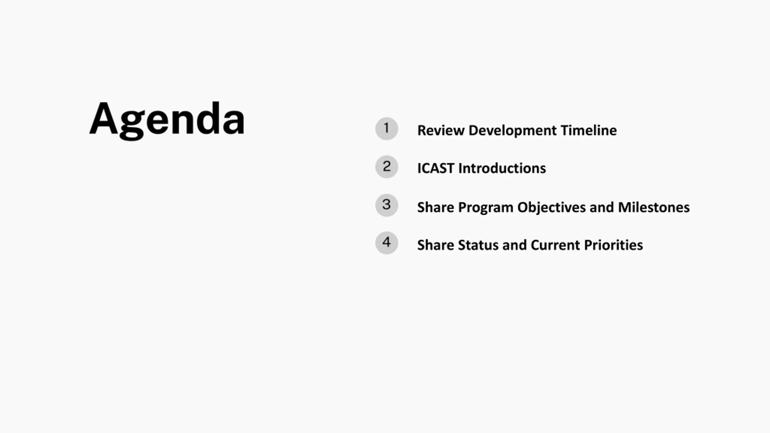 Review Development Timeline ICAST Introductions Share Program Objectives and Milestones Share Status and Current Priorities