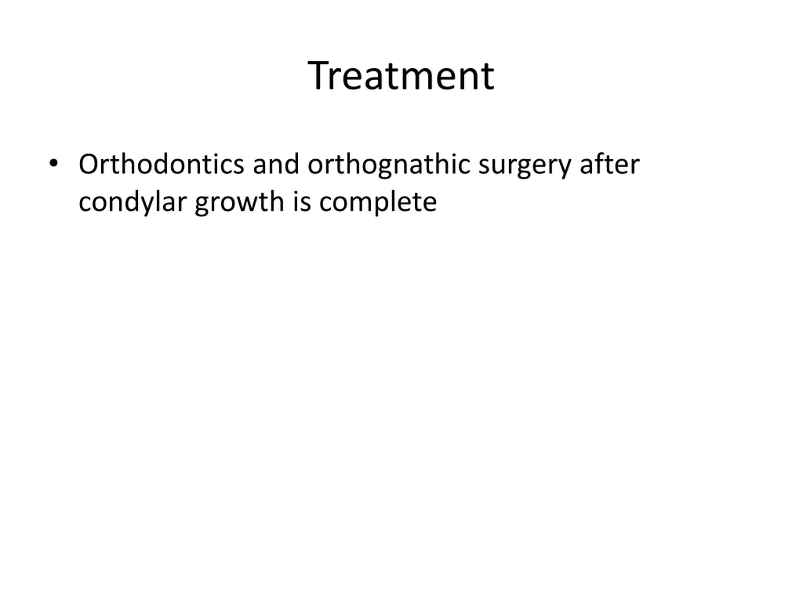 Treatment Orthognathic surgery and orthodontic therapy may be required to correct mandibular asymmetry