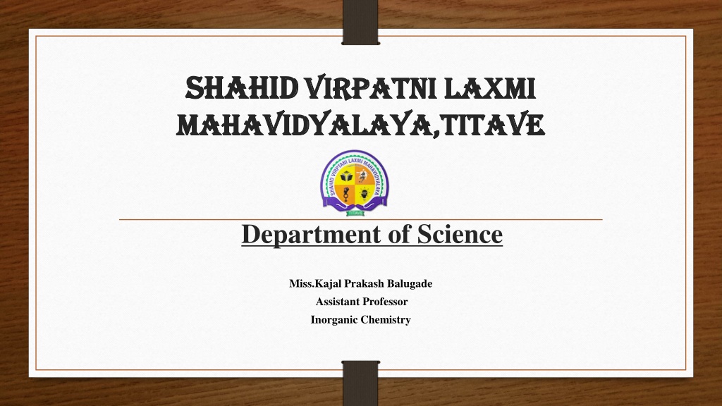 Shahid ShahidVirpatni Virpatni Laxmi Mahavidyalaya,Titave Mahavidyalaya,Titave Laxmi Department of Science Miss.Kajal Prakash Balugade Assistant Professor Inorganic Chemistry