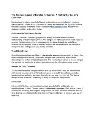 Diamond Bangles in Hyderabad: A Timeless Elegance - Totaram Murarilal and Sons Jewellery Diamond bangles are not just accessories they re a statement of timeless beauty and luxury. Hyderabad, known for its love for exquisite jewelry, has long been a hub for diamond jewellery. Among the best places to find diamond bangles in Hyderabad is Totaram Murarilal and Sons. Let s dive into why these sparkling adornments are a must-have in your jewelry collection. Why Diamond Bangles Are a Must-Have Diamond bangles are more than just pieces of jewelry. They symbolize elegance, grace, and status. Here's why owning a pair (or more!) is essential. 1. Tradition Meets Glamour Hyderabad has a rich tradition when it comes to jewelry, especially diamond jewellery. Diamond bangles effortlessly blend this tradition with a touch of modern glamour. Whether you re dressing up for a wedding or a casual outing, these bangles add that perfect hint of sparkle and refinement. 2. Unmatched Versatility One of the best things about diamond bangles is their versatility. Whether you're donning a saree for a traditional function or slipping into a sleek evening dress, a pair of diamond bangles in Hyderabad elevates your look, making you feel royal and confident. Their classic design complements both modern and traditional outfits with ease.