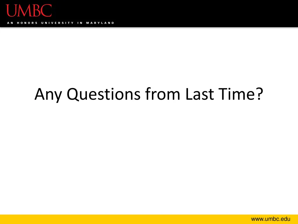 Announcements Project 1 is out! Due on Monday, April 18th @ 8:59:59 PM Get started on it now! www.umbc.edu