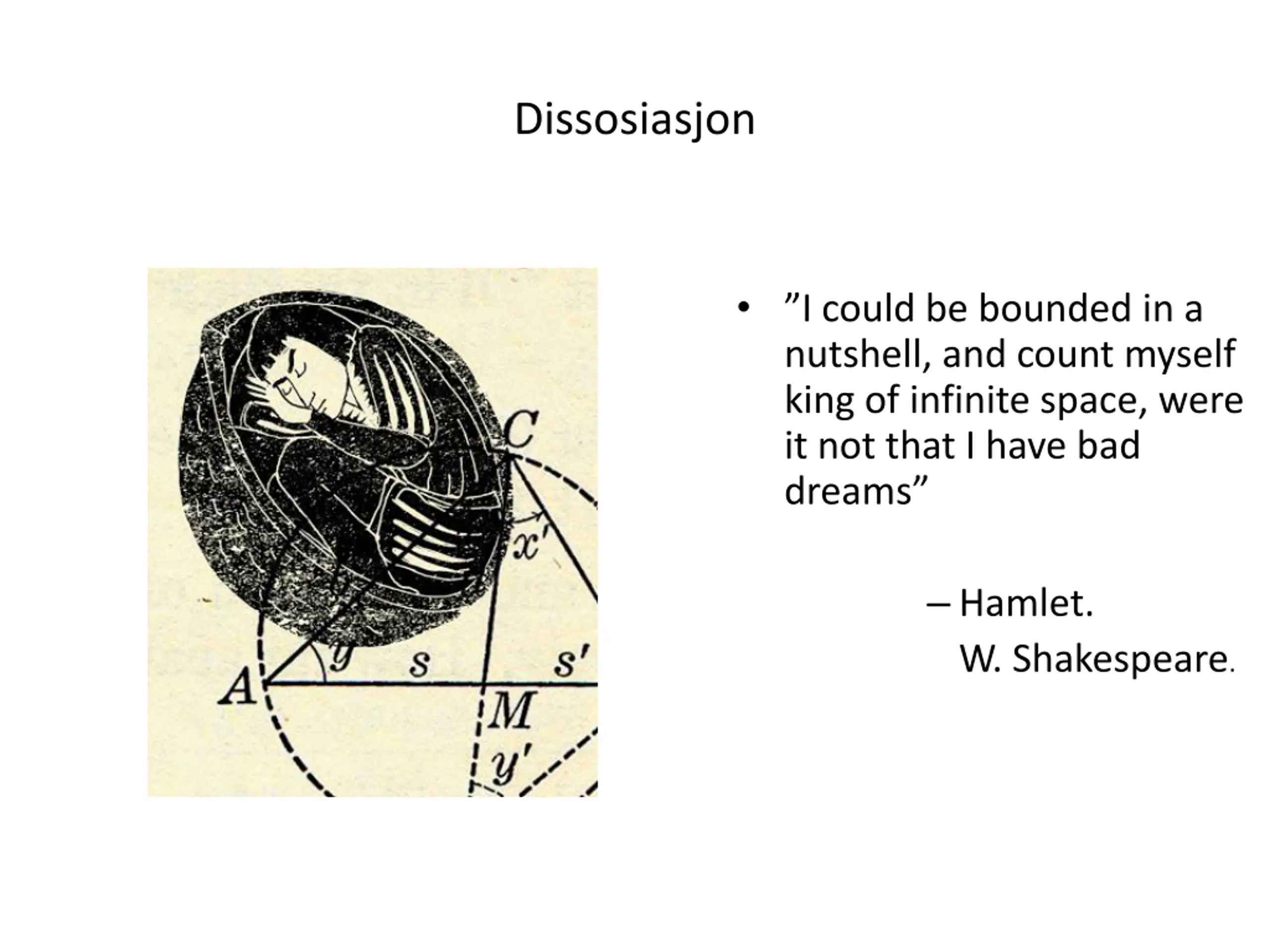 Dissosiasjon I could be bounded in a nutshell, and count myself king of infinite space, were it not that I have bad dreams Hamlet. W. Shakespeare.