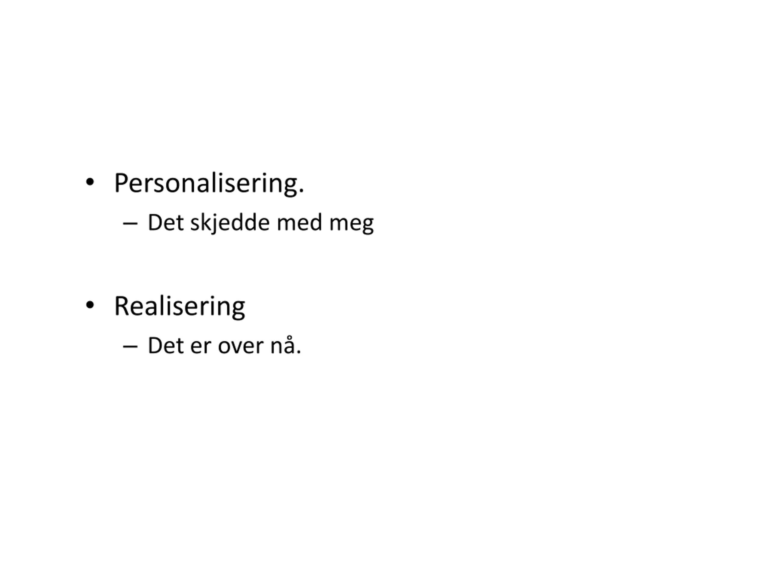 Personalisering. Det skjedde med meg Realisering Det er over n .