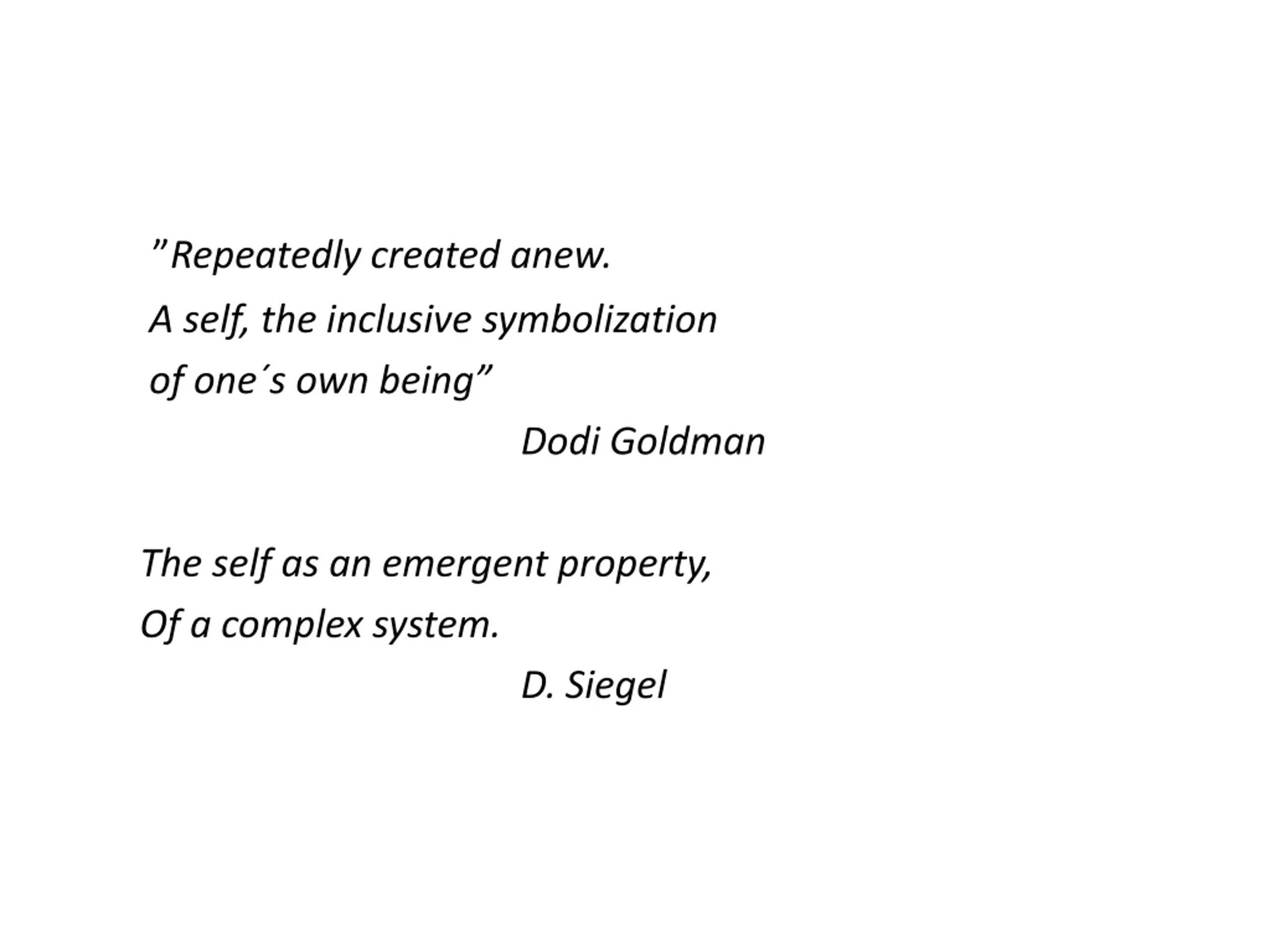 Repeatedly created anew. A self, the inclusive symbolization of one s own being Dodi Goldman The self as an emergent property, Of a complex system. D. Siegel