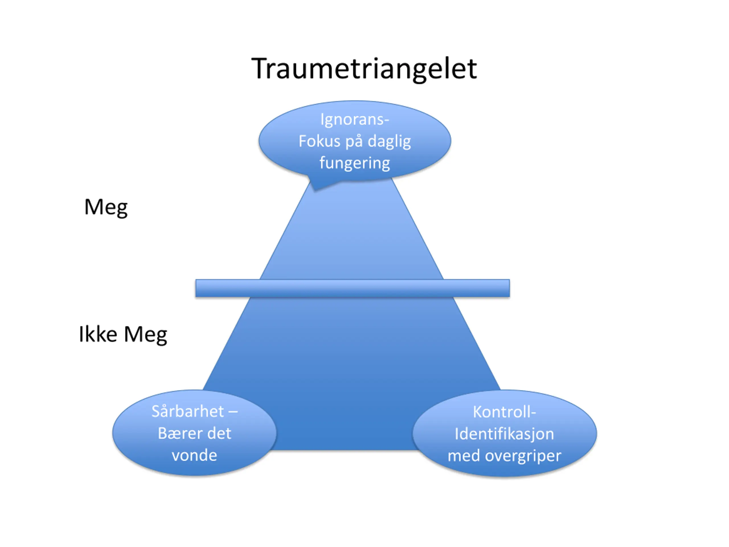 Traumetriangelet Ignorans- Fokus p daglig fungering Meg Ikke Meg S rbarhet B rer det vonde Kontroll- Identifikasjon med overgriper