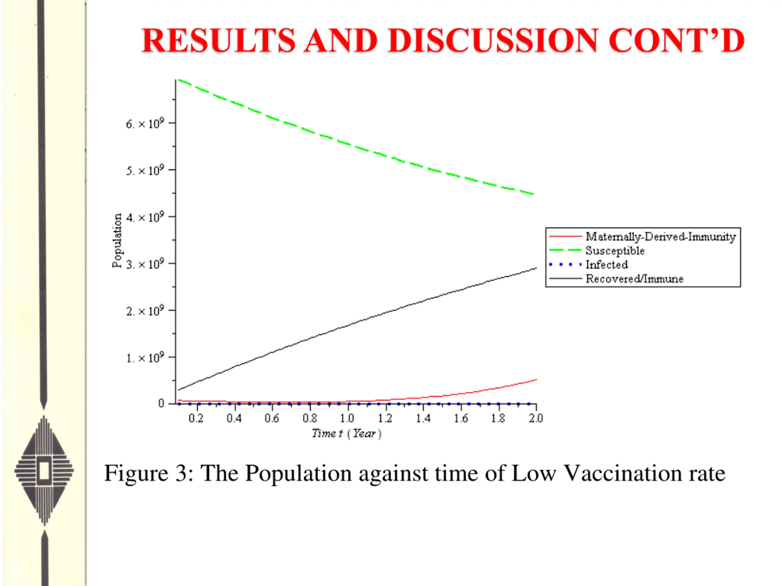 RESULTS AND DISCUSSION CONTD Figure 3: The Population against time of Low Vaccination rate