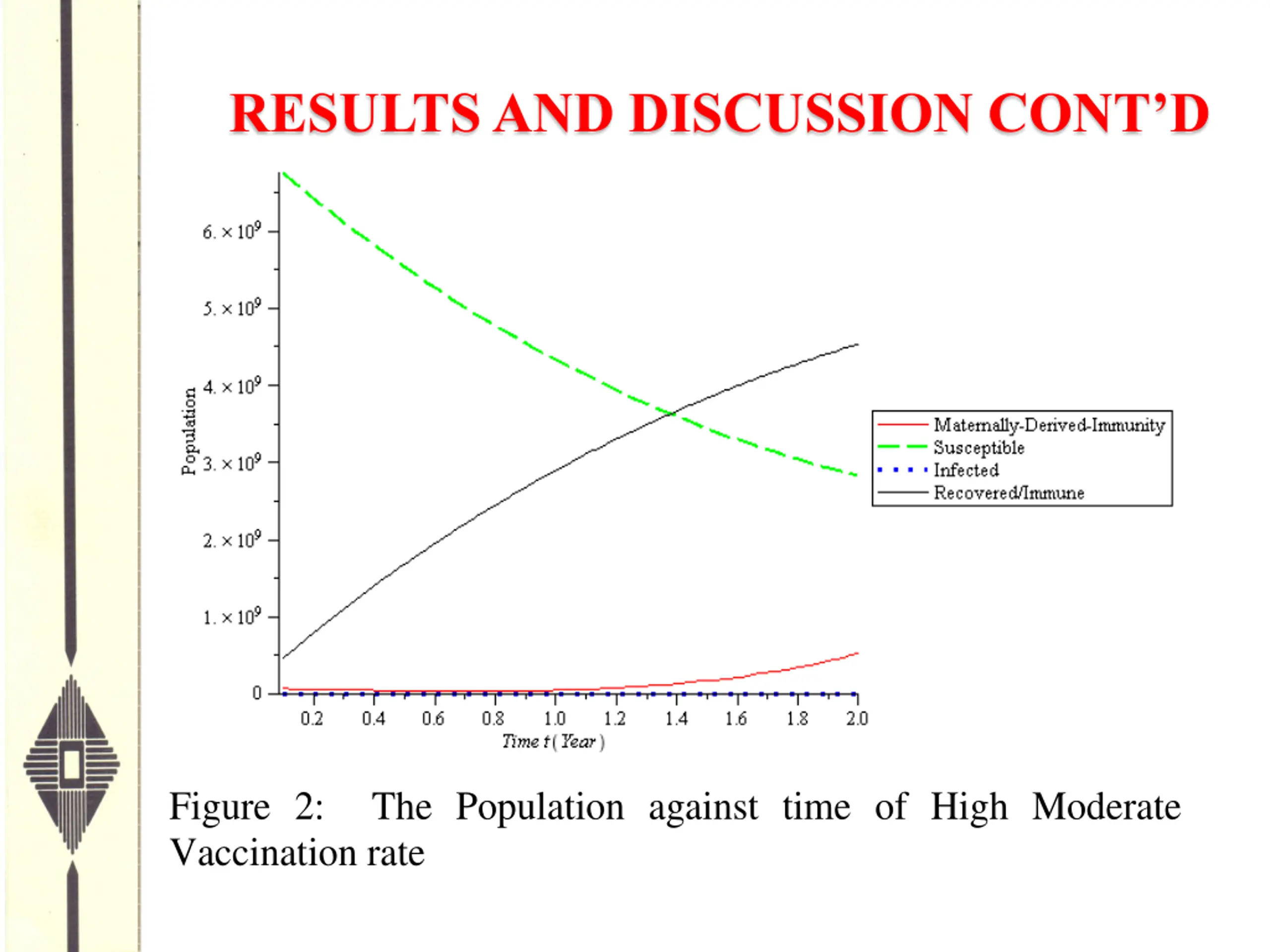 RESULTS AND DISCUSSION CONTD Figure 2: The Population against time of High Moderate Vaccination rate