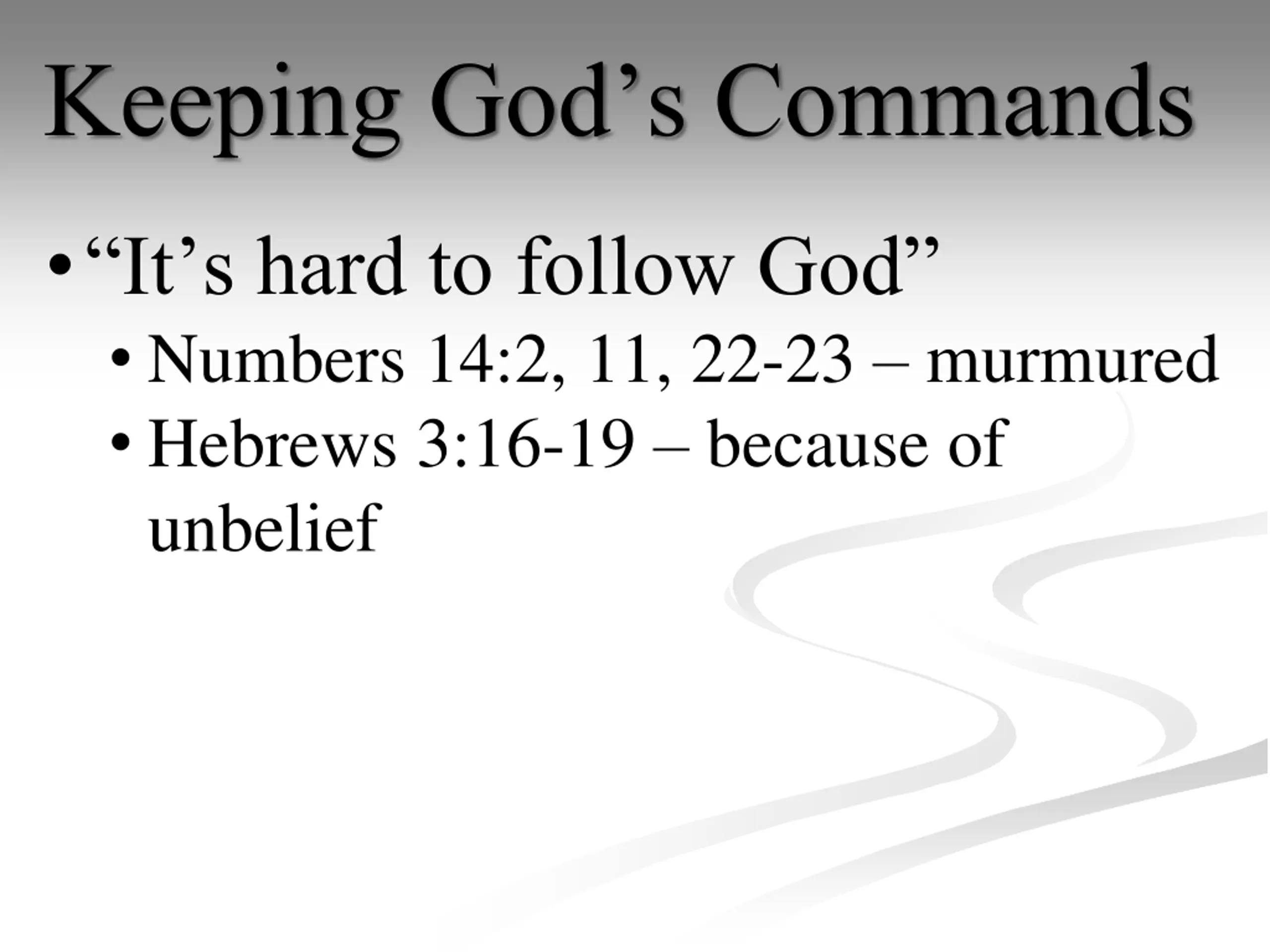Keeping Gods Commands It s hard to follow God Numbers 14:2, 11, 22-23 murmured Hebrews 3:16-19 because of unbelief